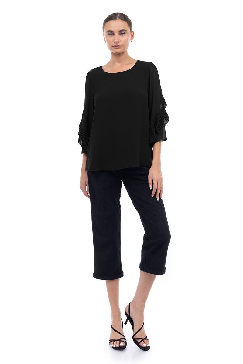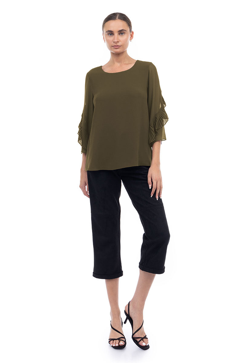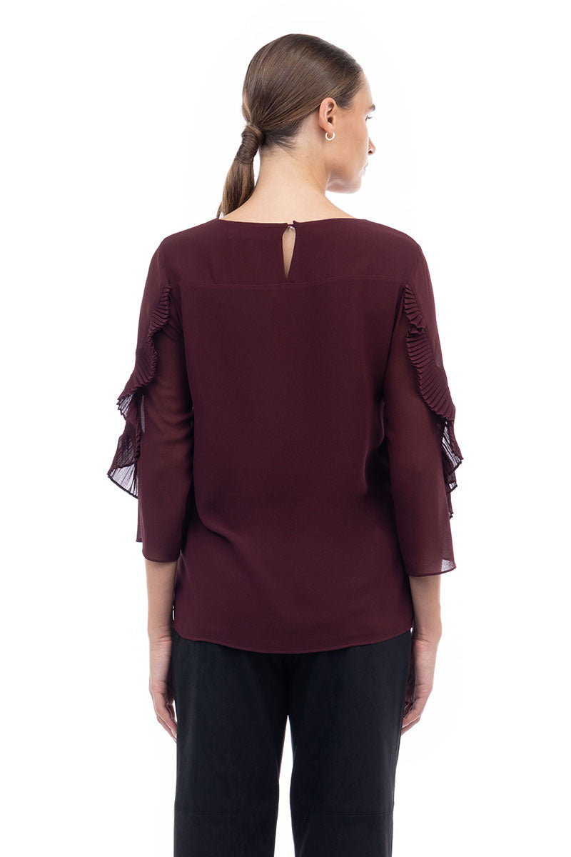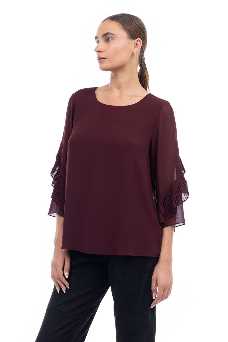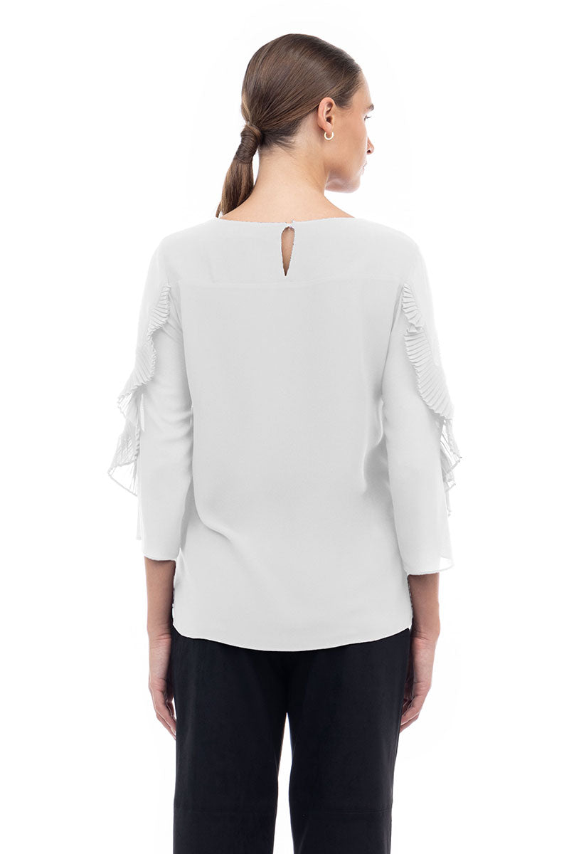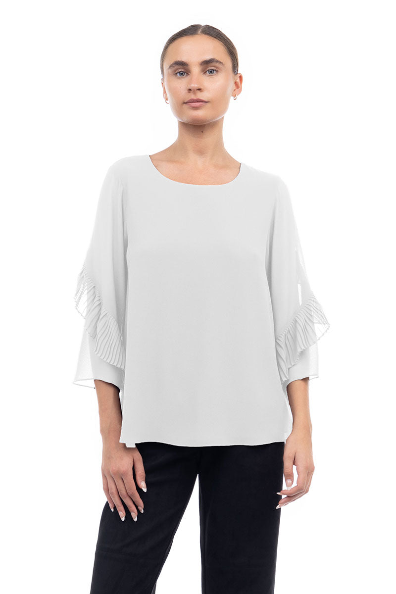 3/4 Pleated Ruffle Sleeve Blouse