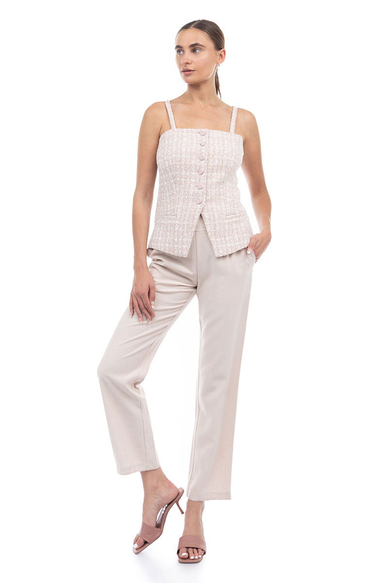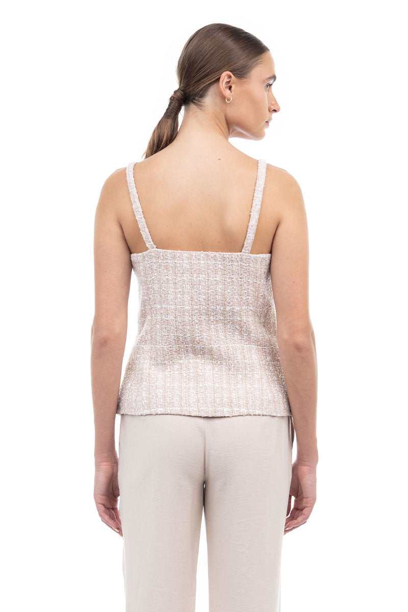 Tweed Vest With Front Zipper And Fringe Detail