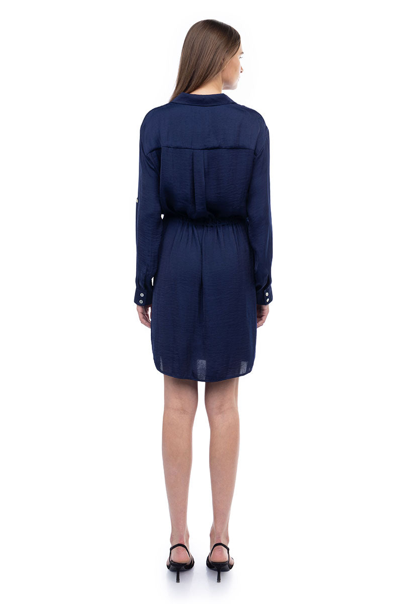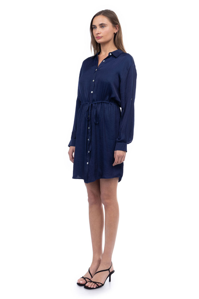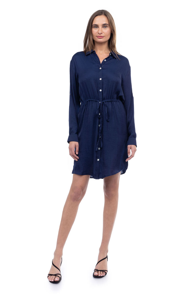 Long Sleeve Shirt Dress With Drawstring Waist
