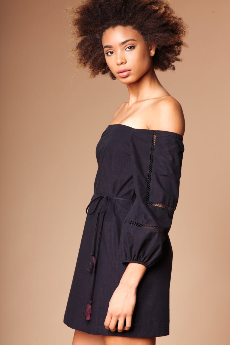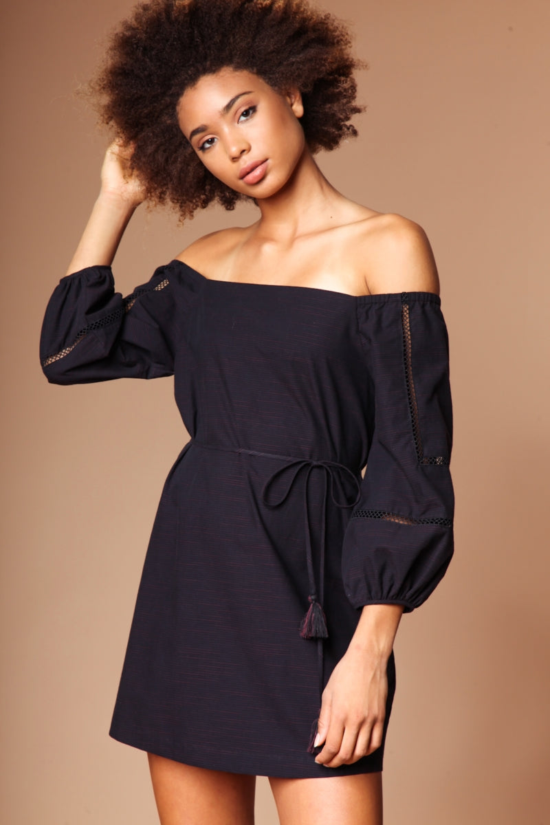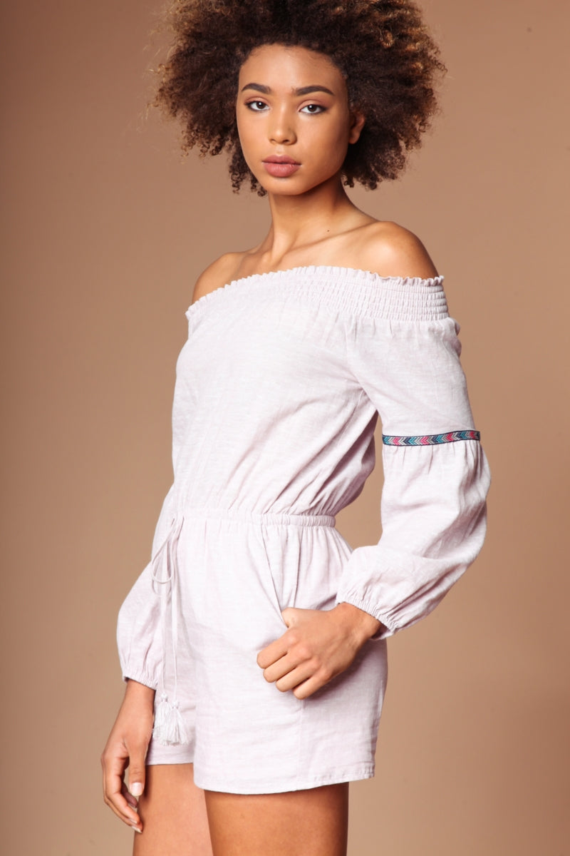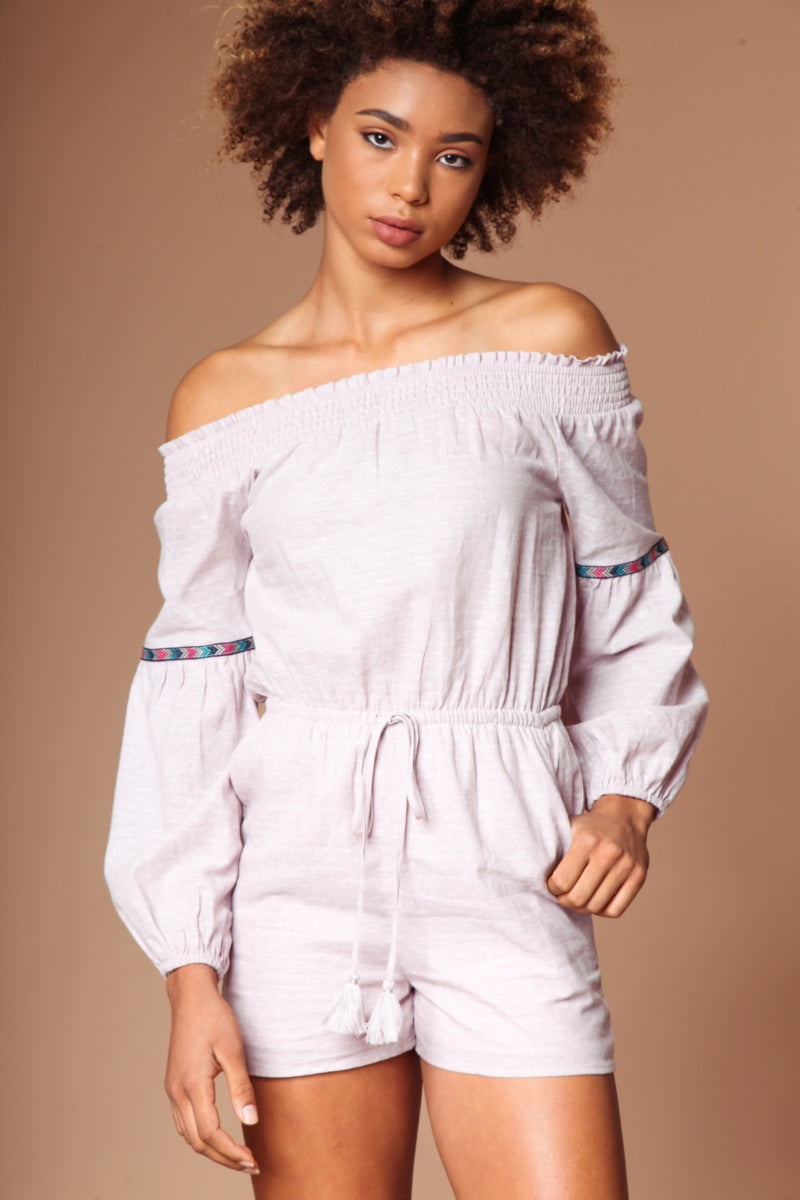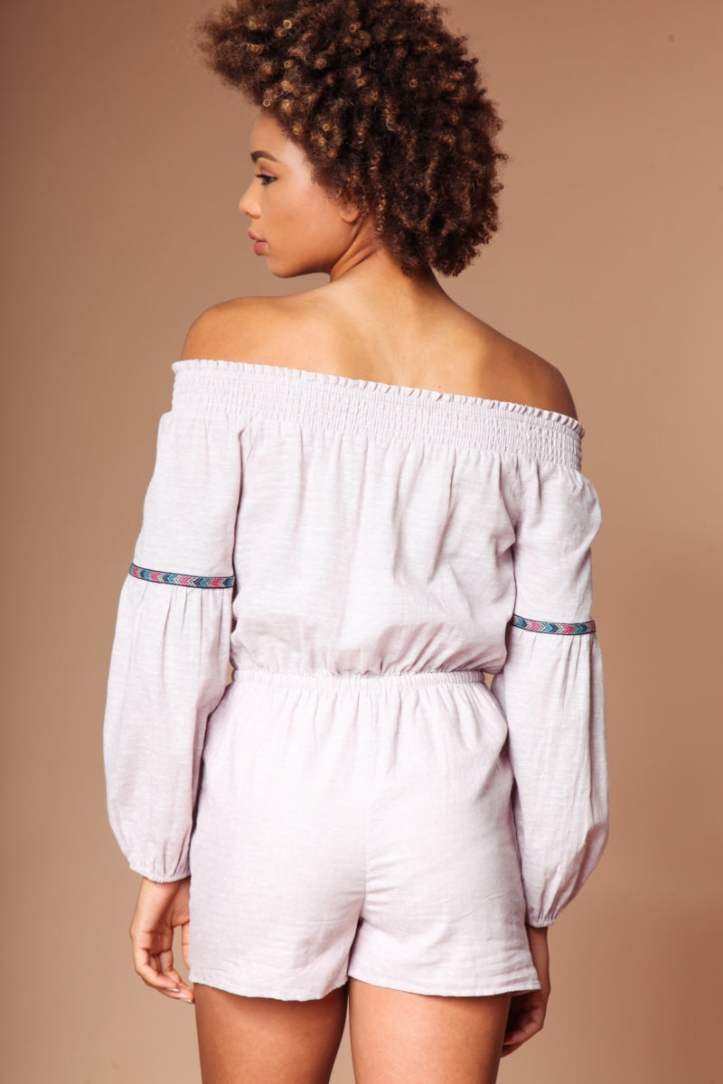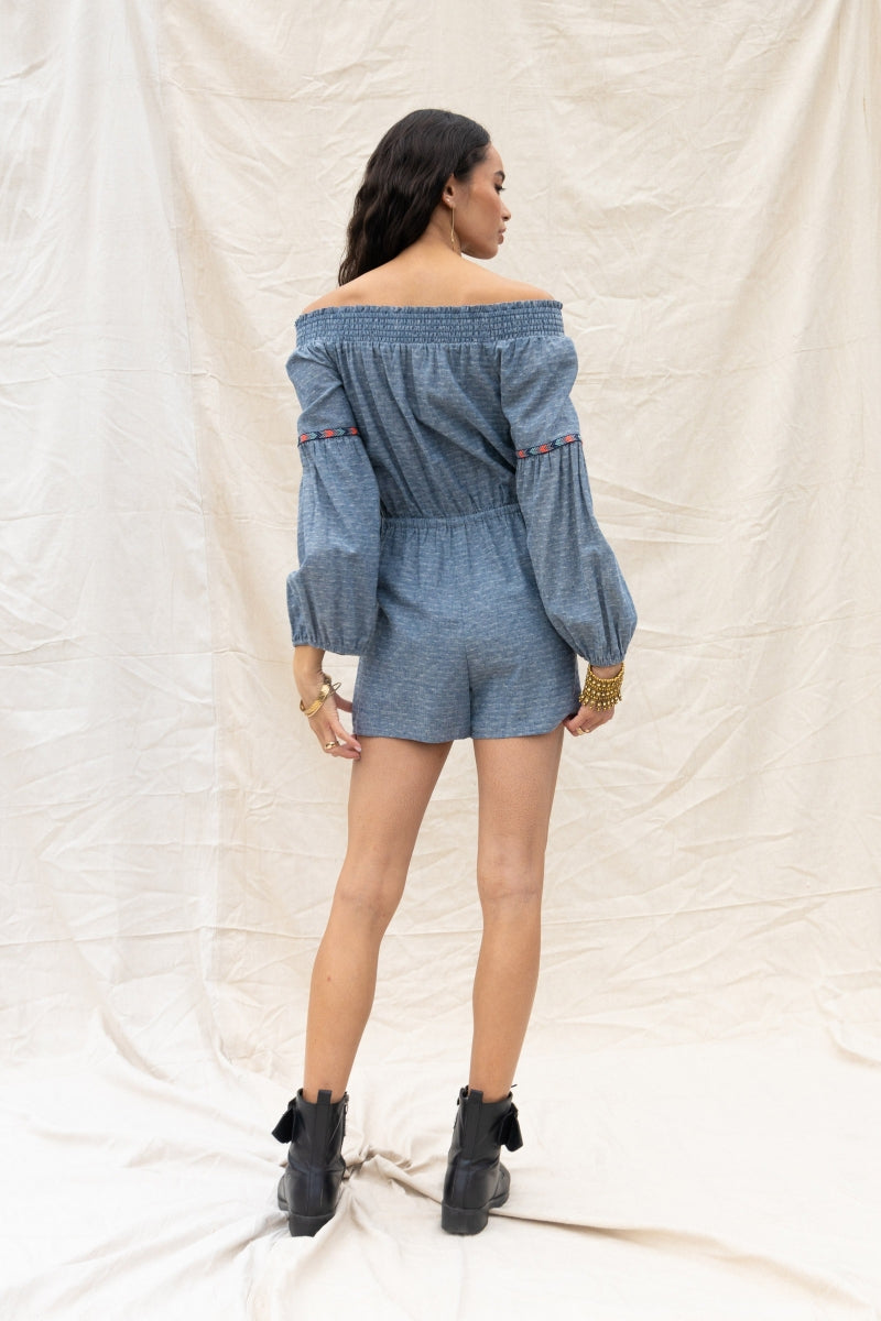 Embroidered Off Shoulder Pigment Dyed Blouse