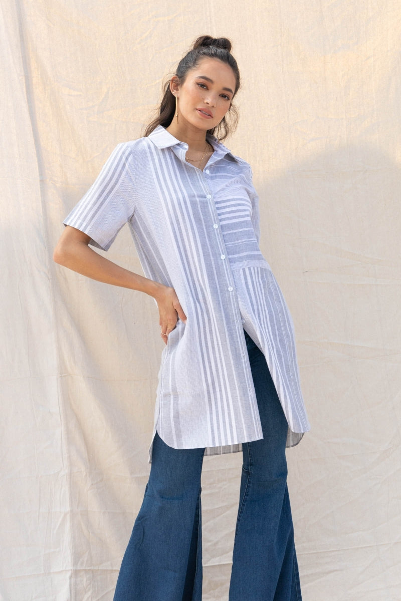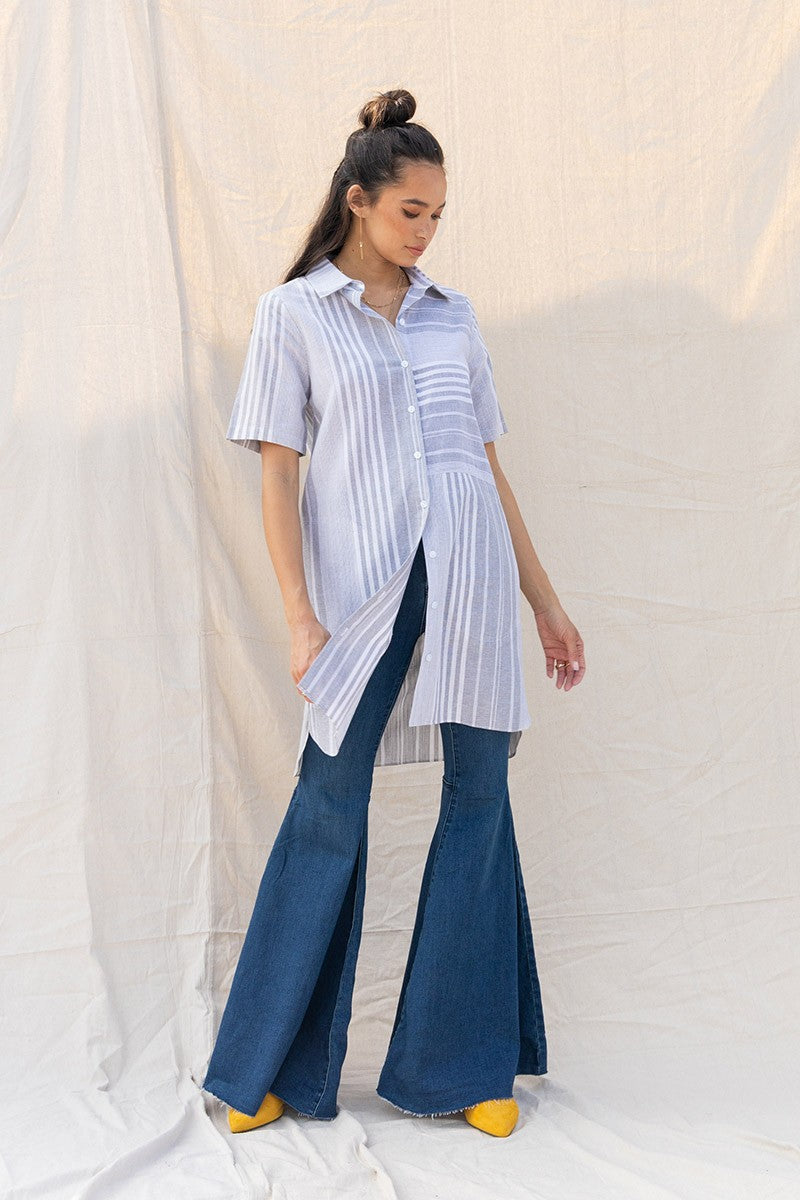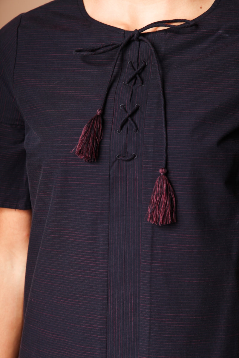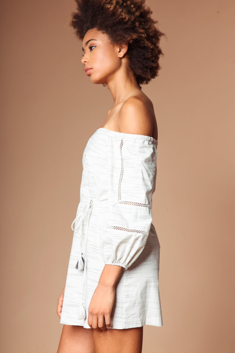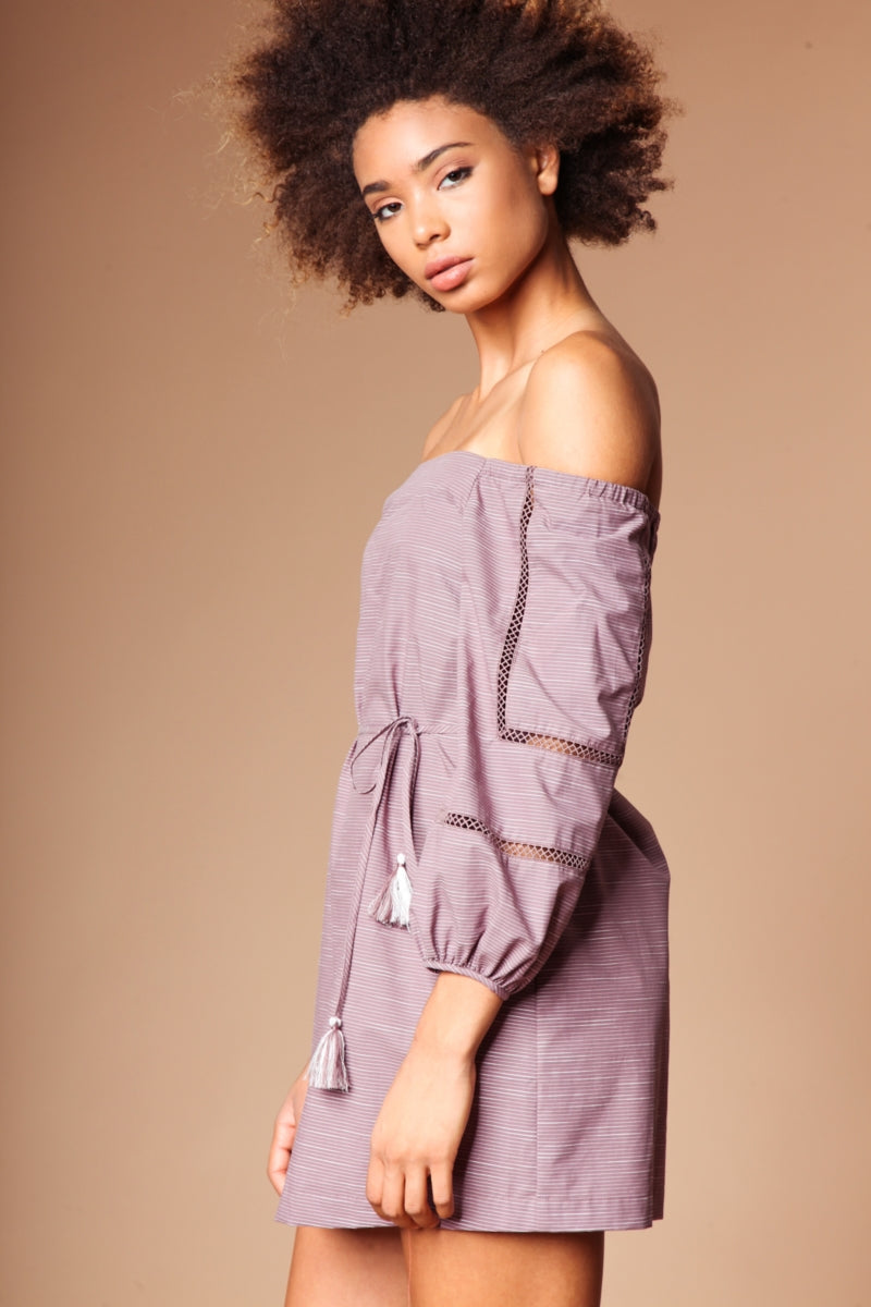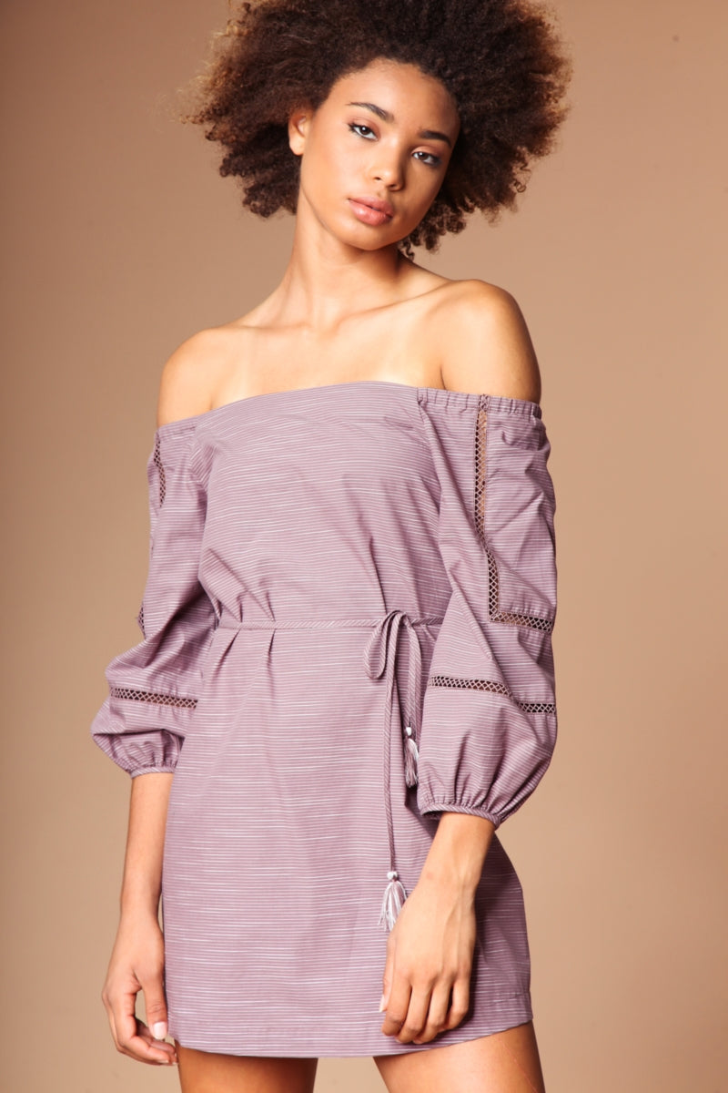 Embroidered Off Shoulder Pigment Dyed Blouse