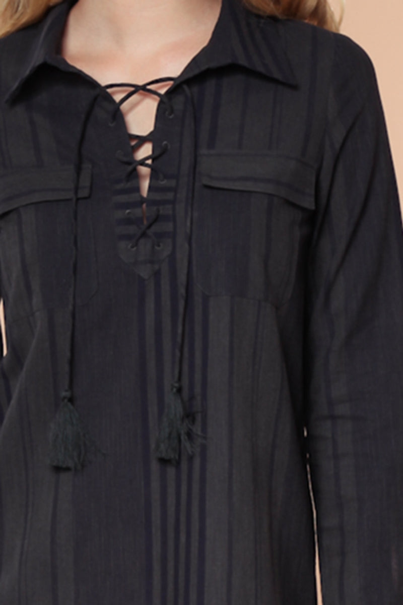 Front Lace Up Off Shoulder Bubble Sleeve Blouse