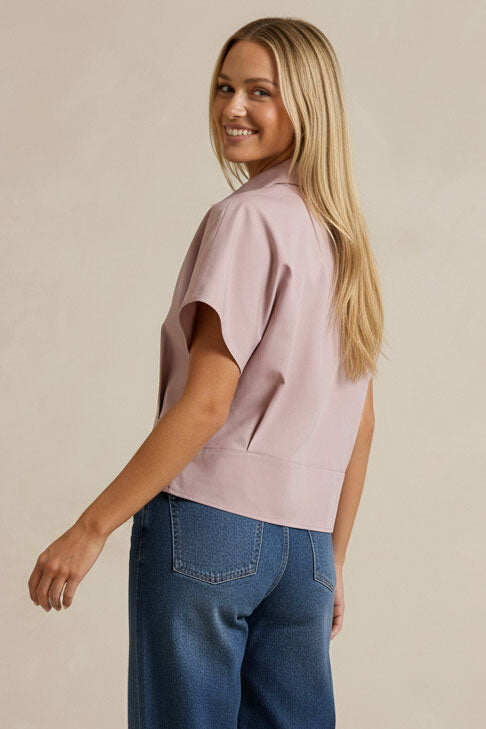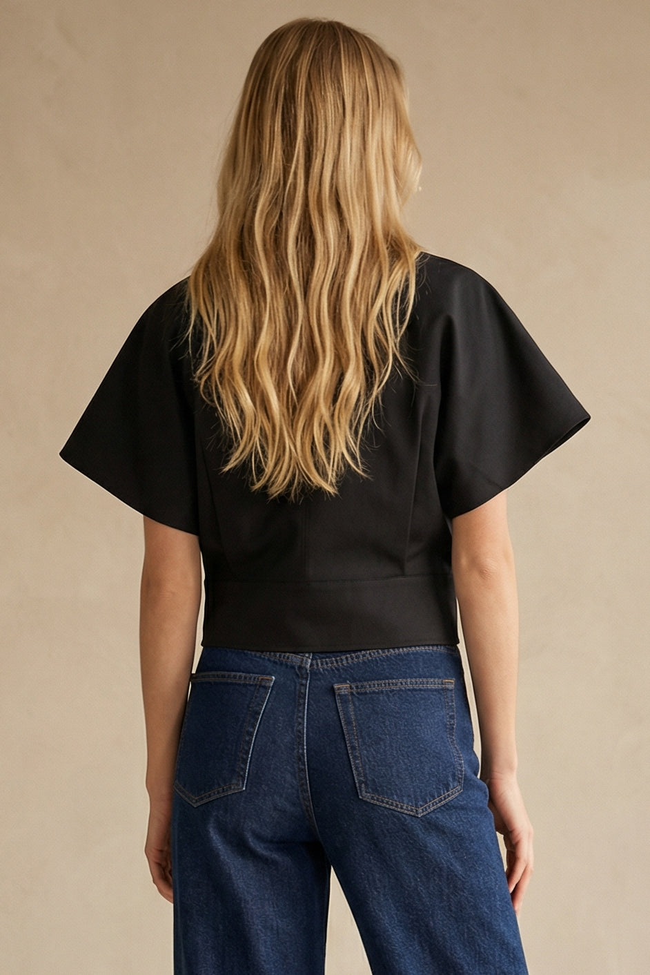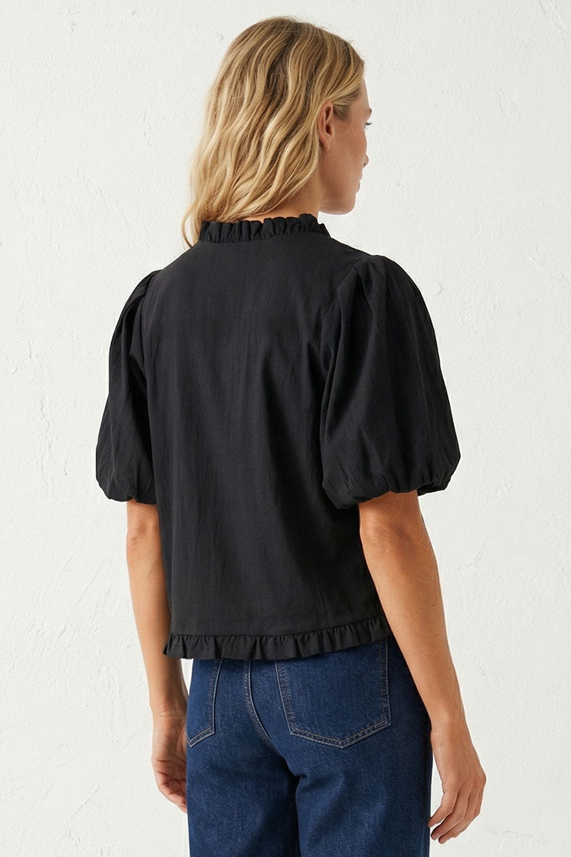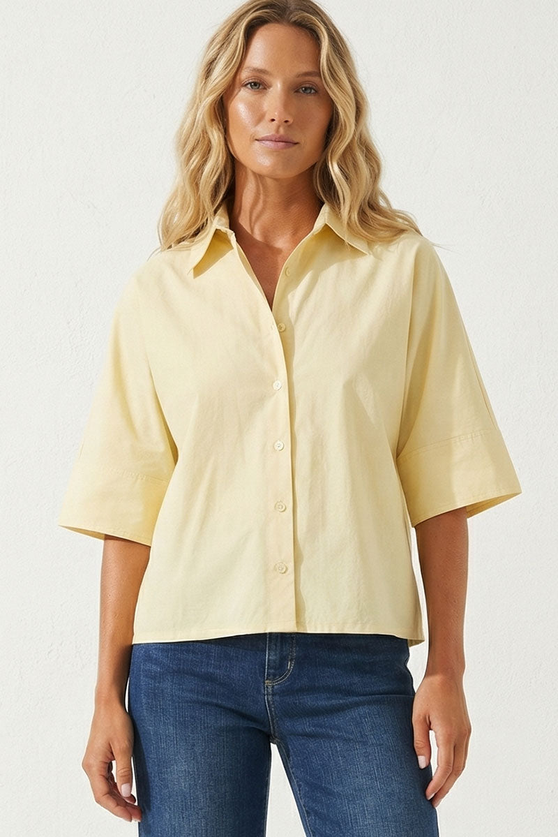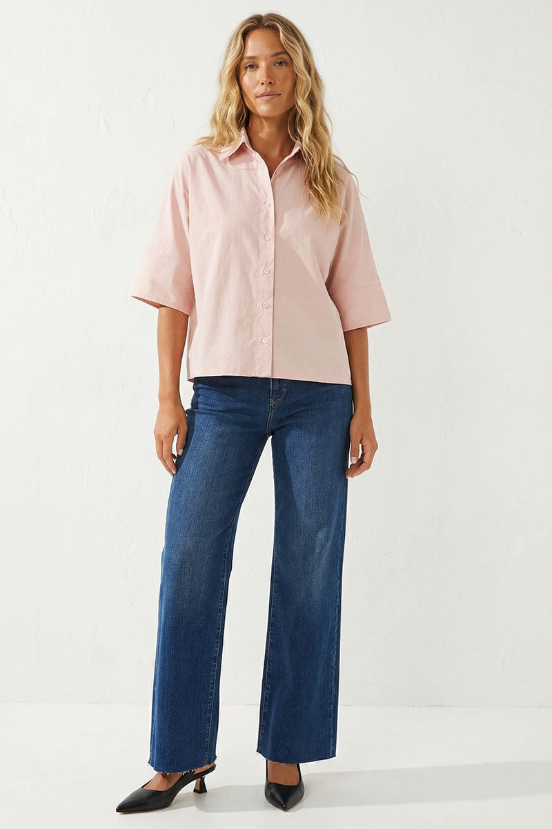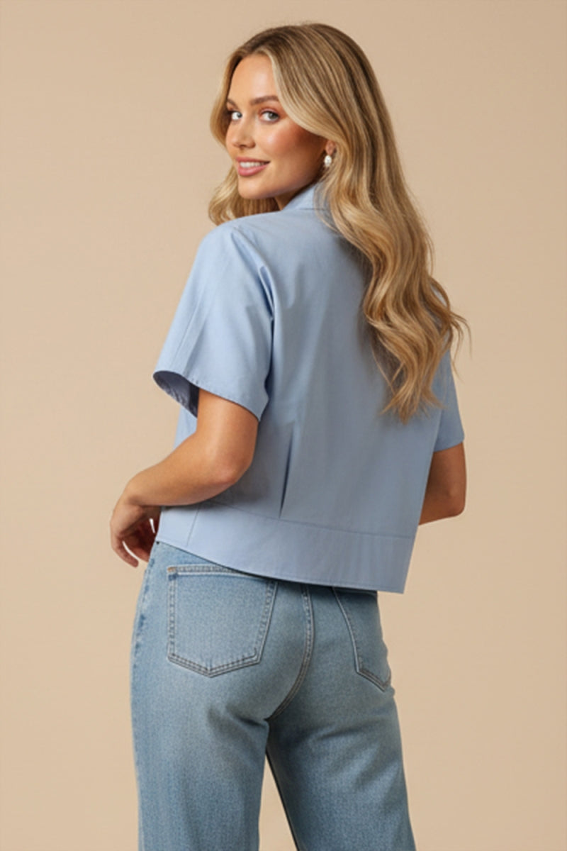 Half Sleeve Hi-lo Bubble Hem Blouse