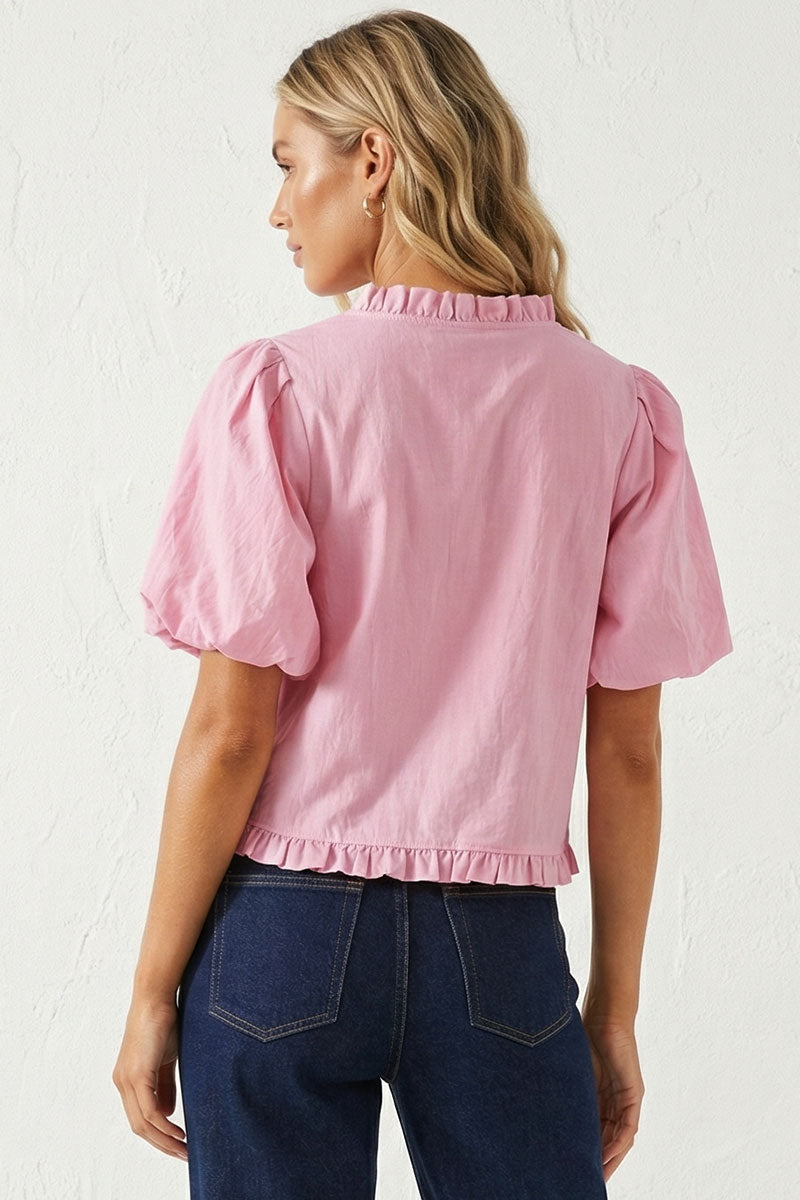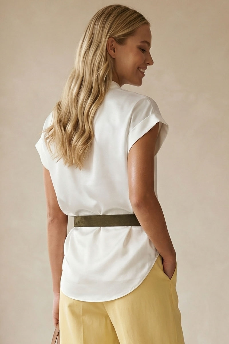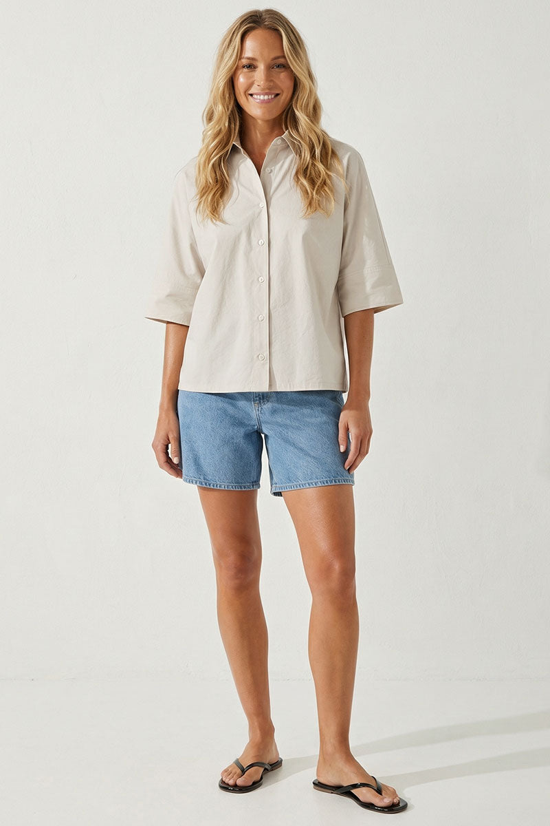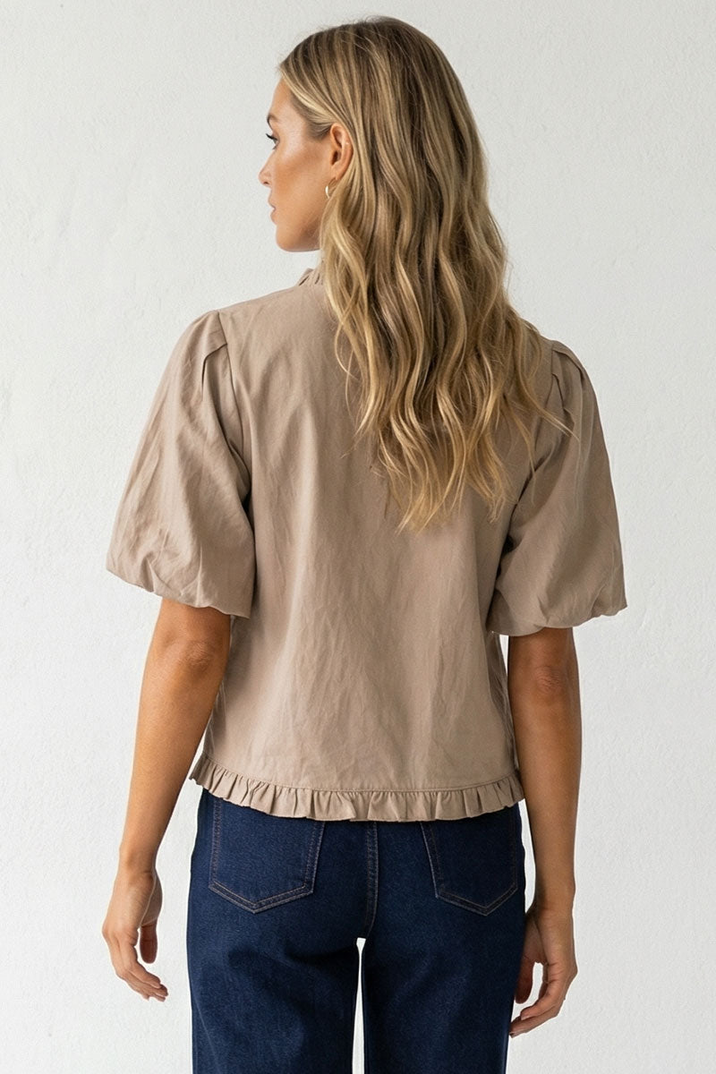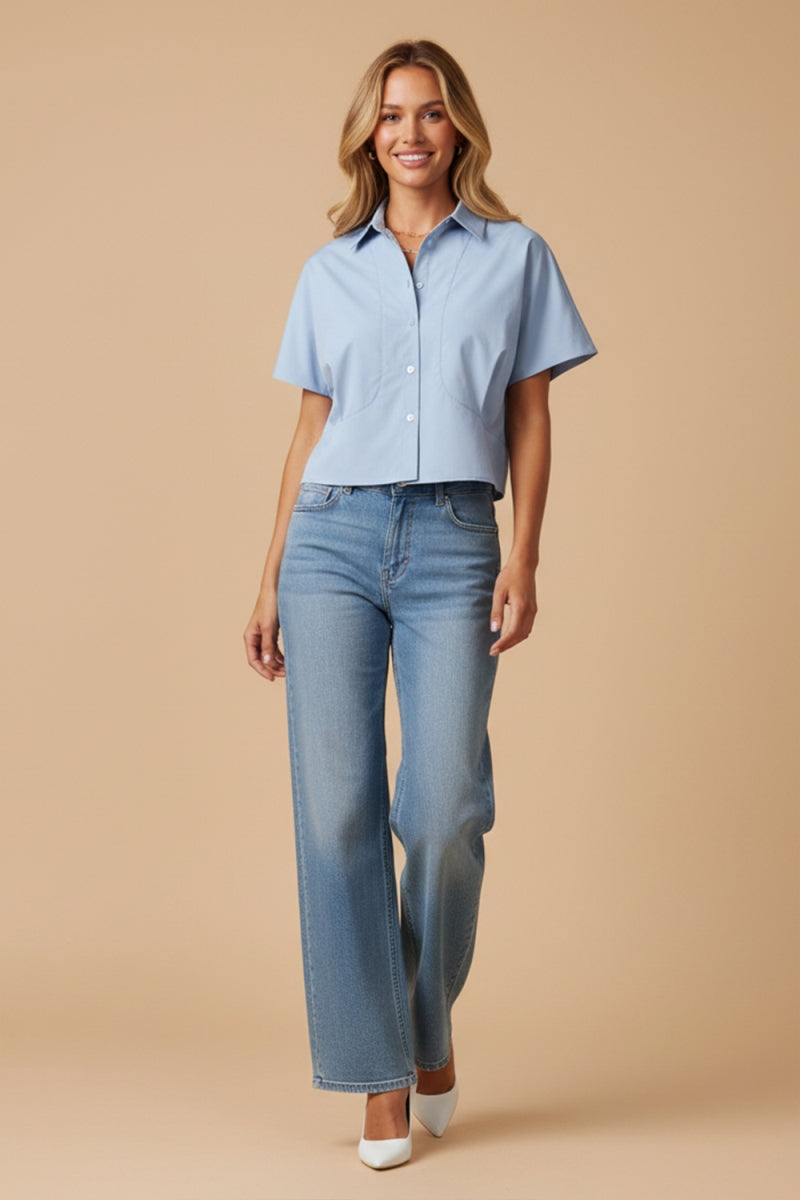 Half Sleeve Hi-lo Bubble Hem Blouse