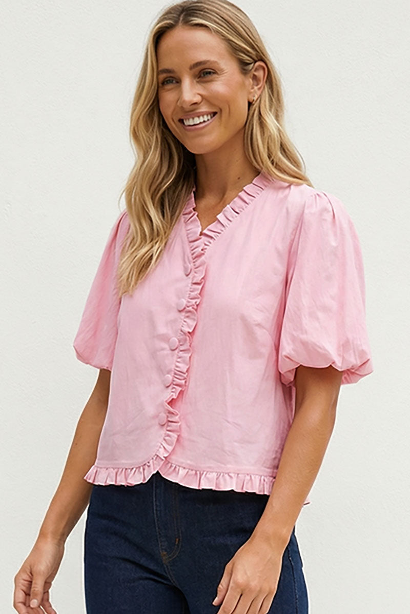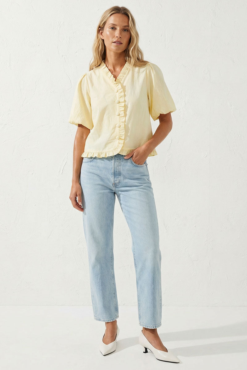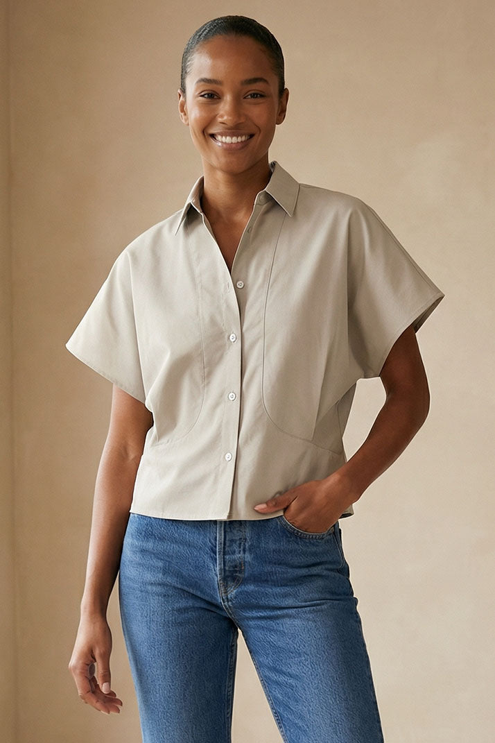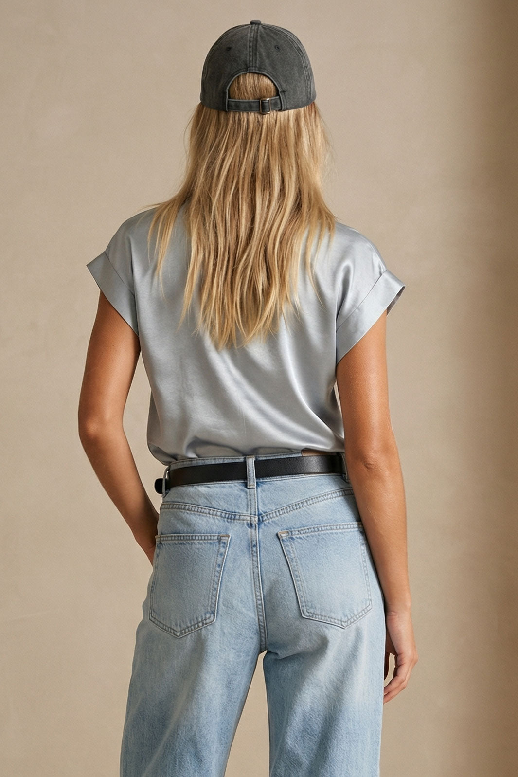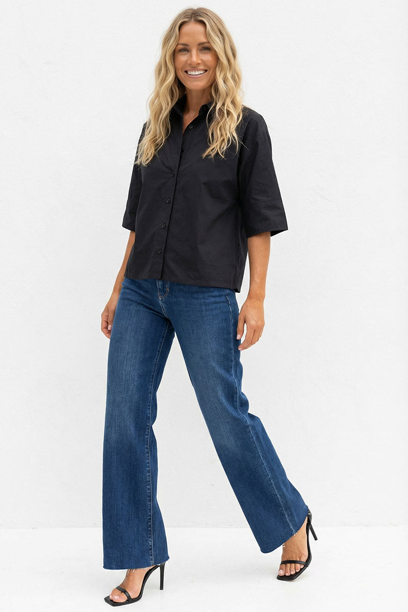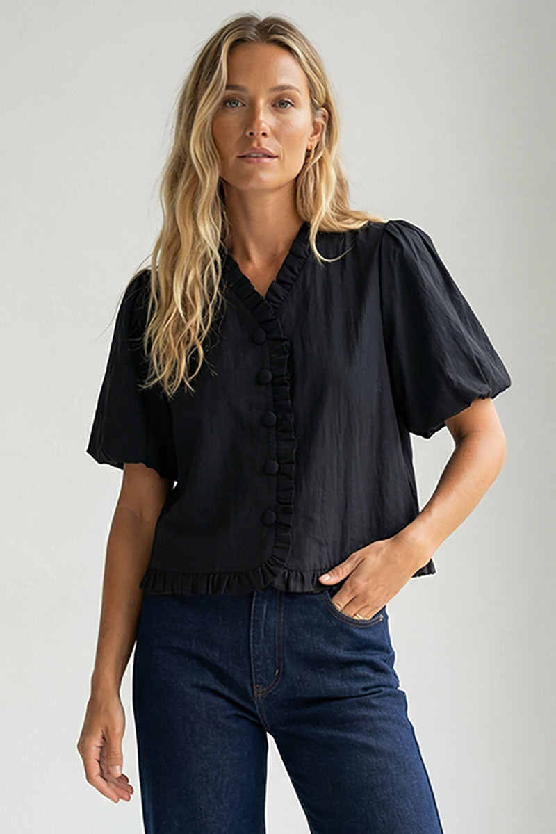 Half Sleeve Hi-lo Bubble Hem Blouse