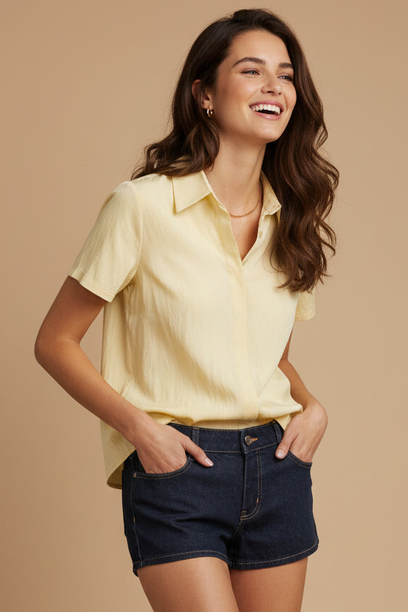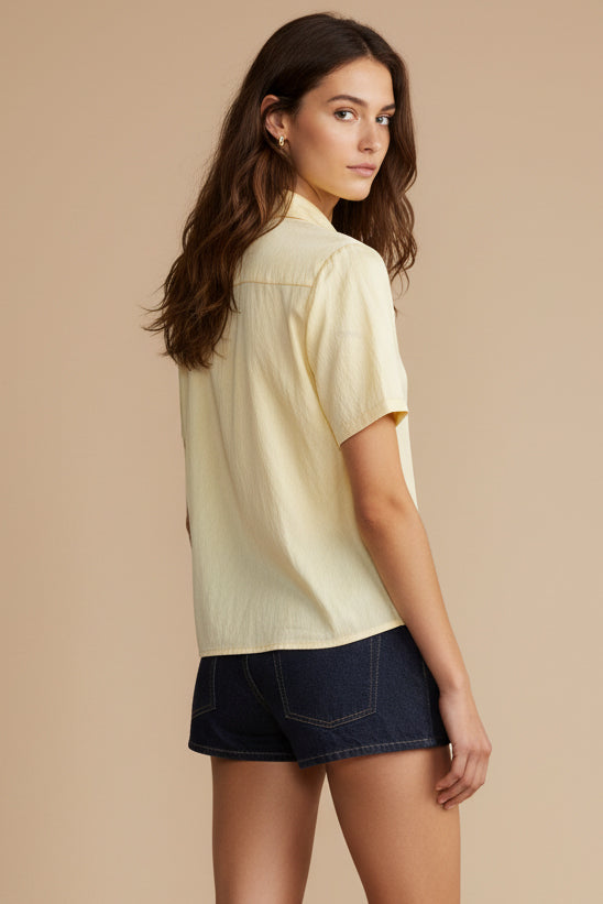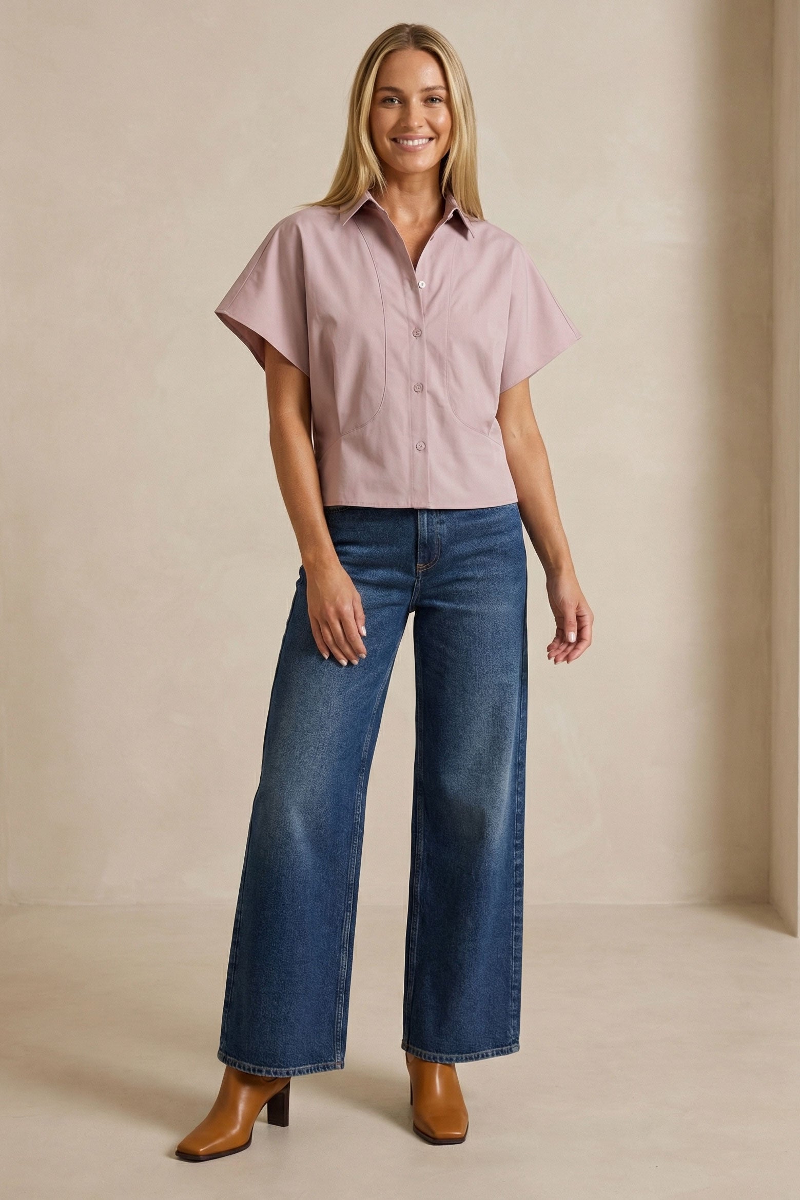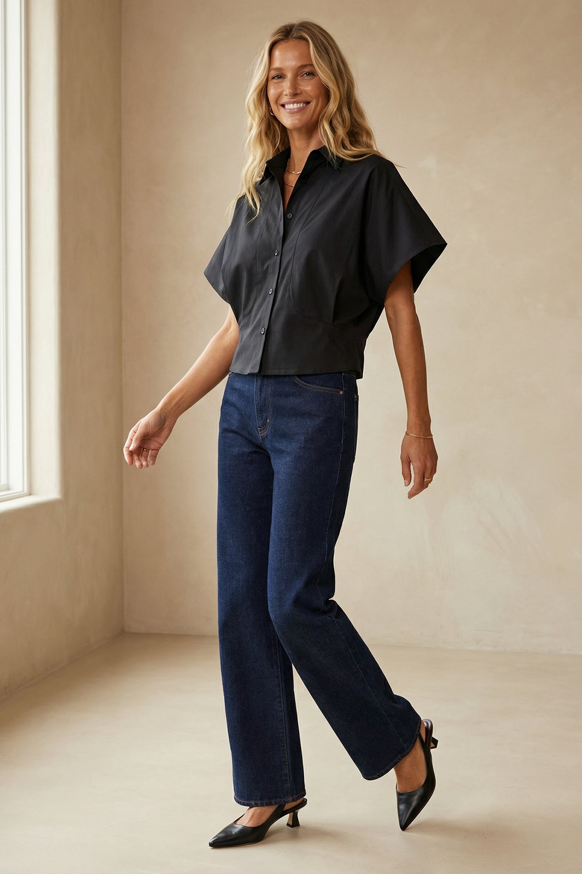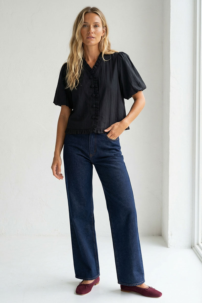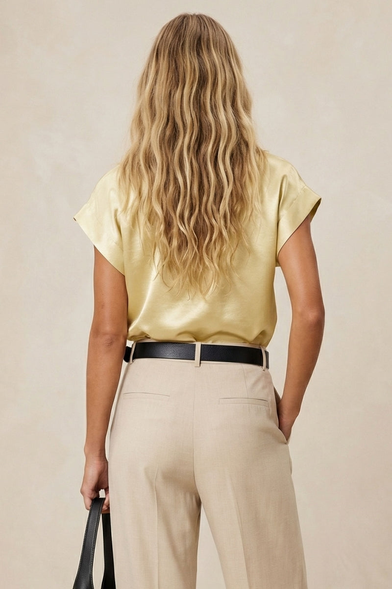 Half Sleeve Hi-lo Bubble Hem Blouse