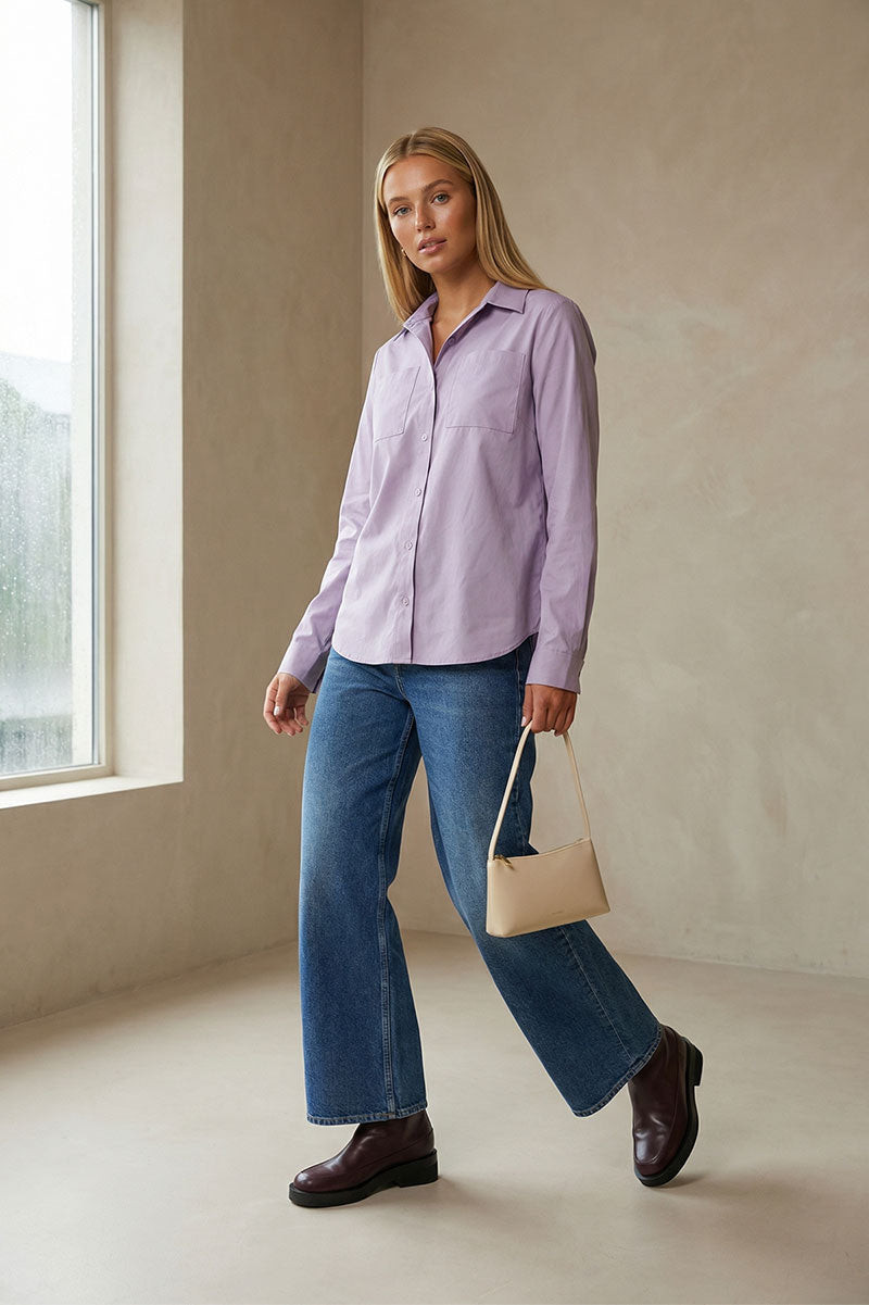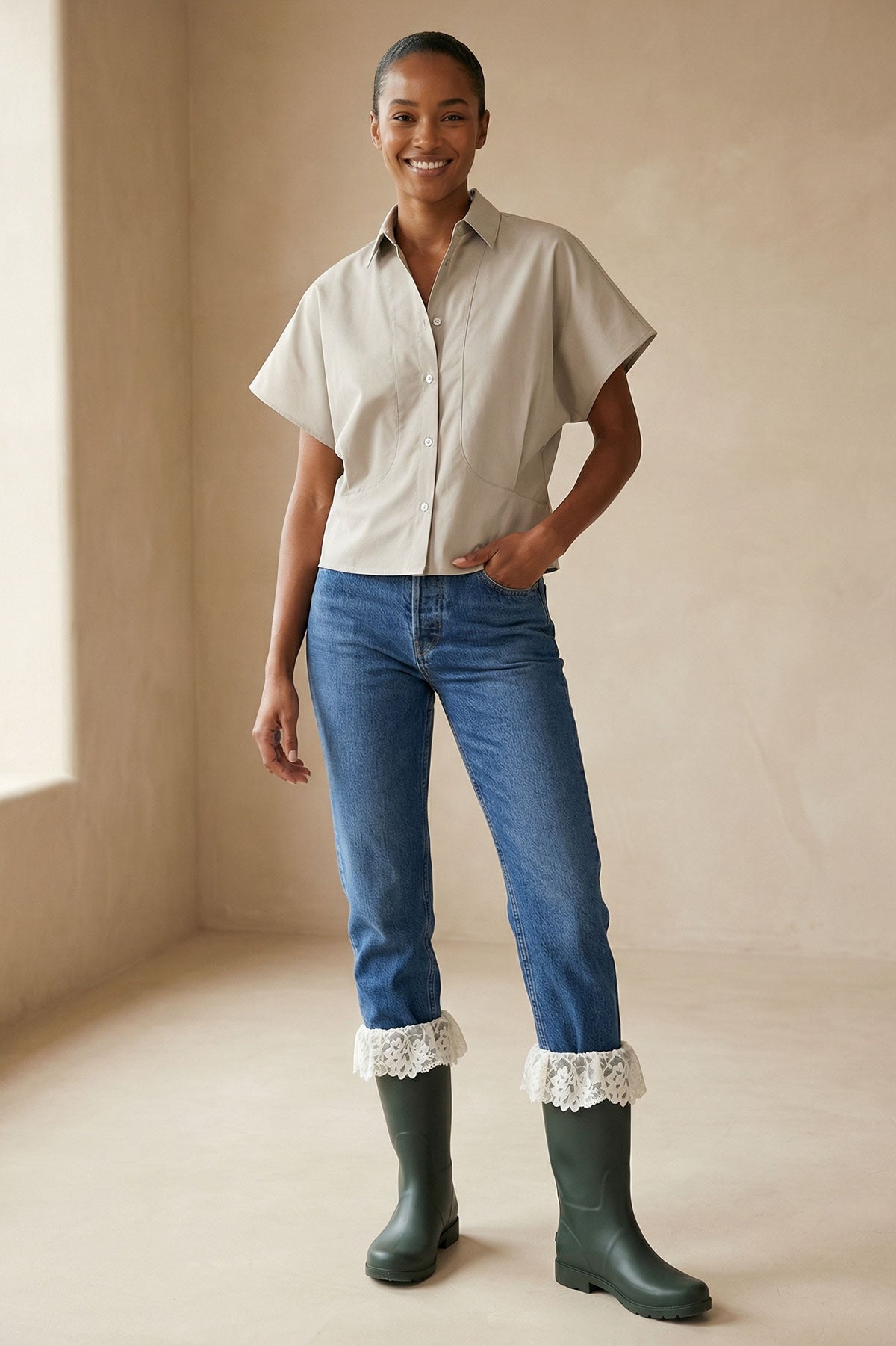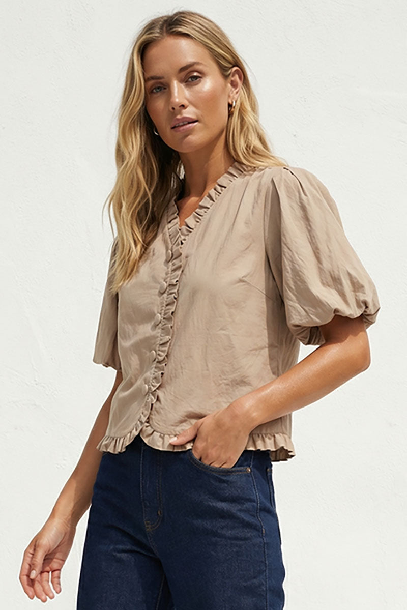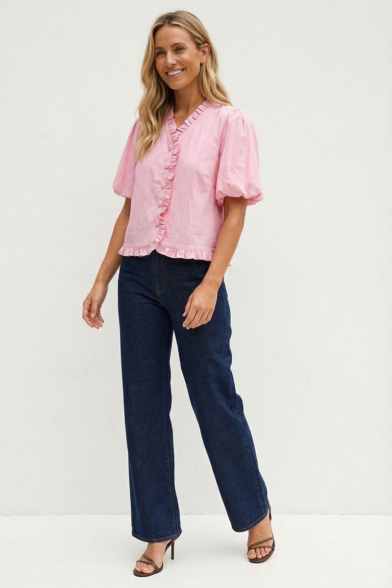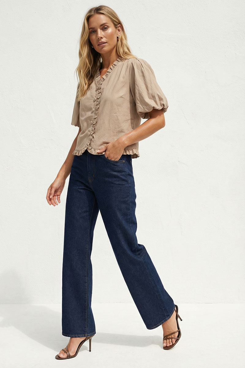 Half Sleeve Hi-lo Bubble Hem Blouse