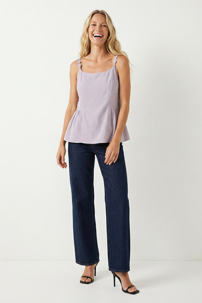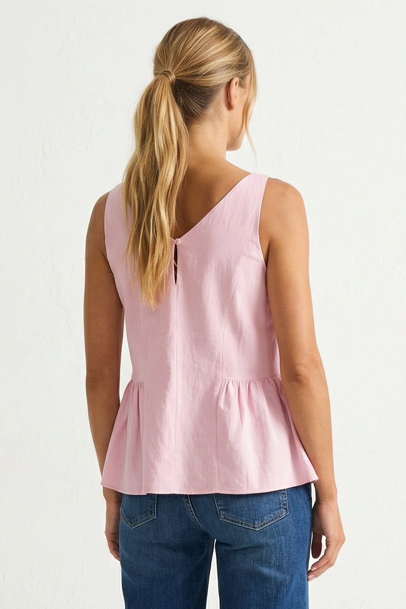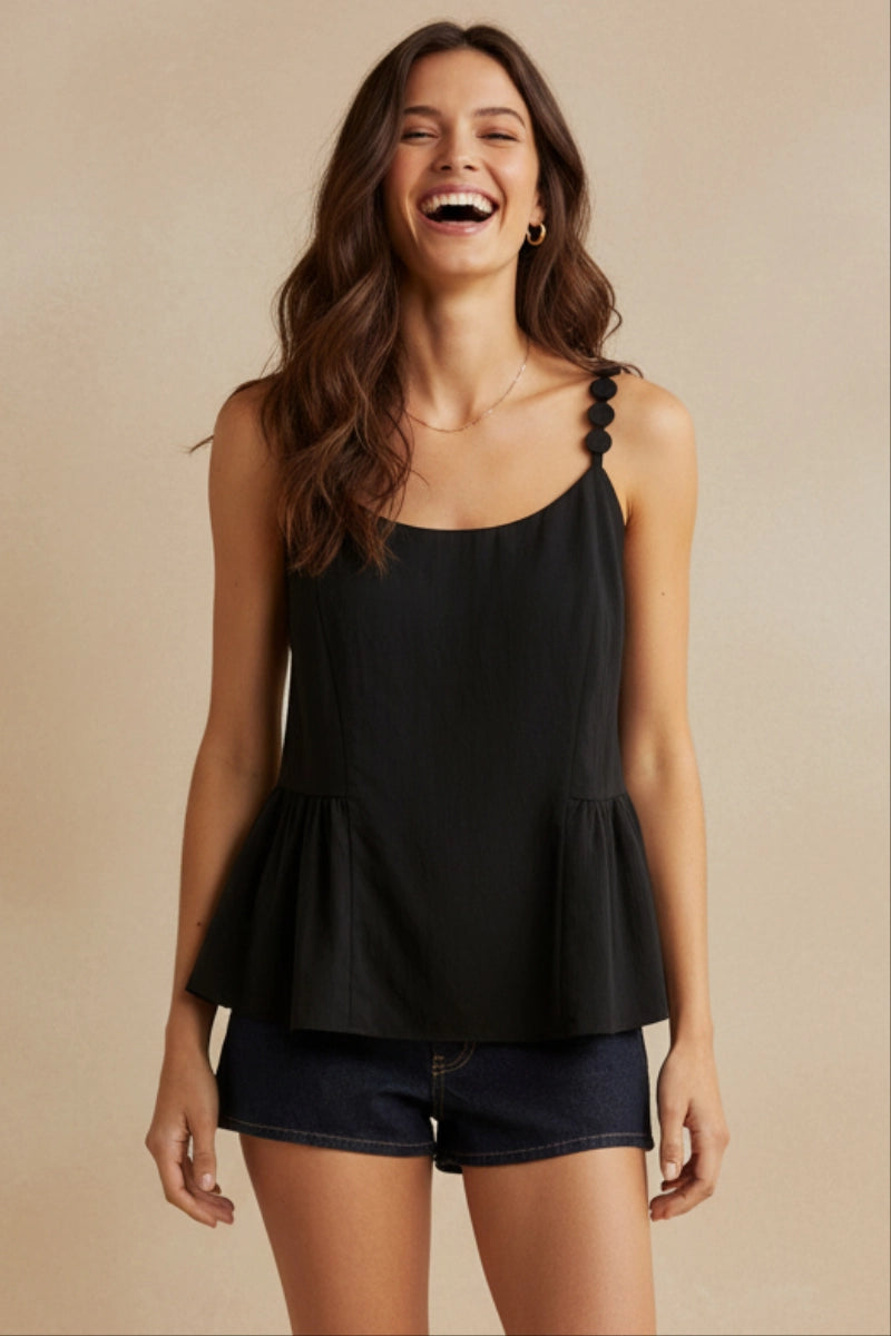 Button Detail Ruffle Tank Top