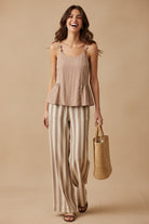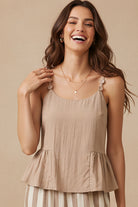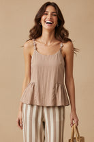 Button Detail Ruffle Tank Top - Taupe is backordered and will ship as soon as it is back in stock.