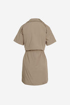 ╴Women's Button Front Mini Shirt Dress With Drawstring Waist