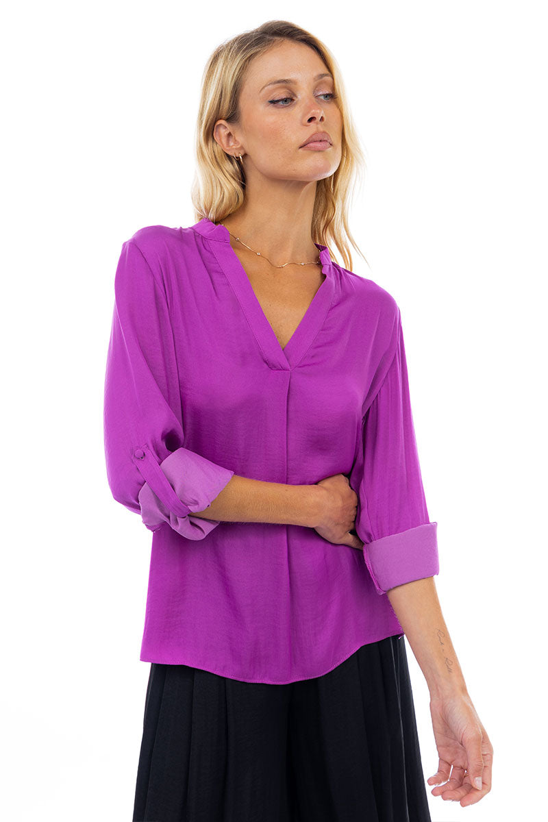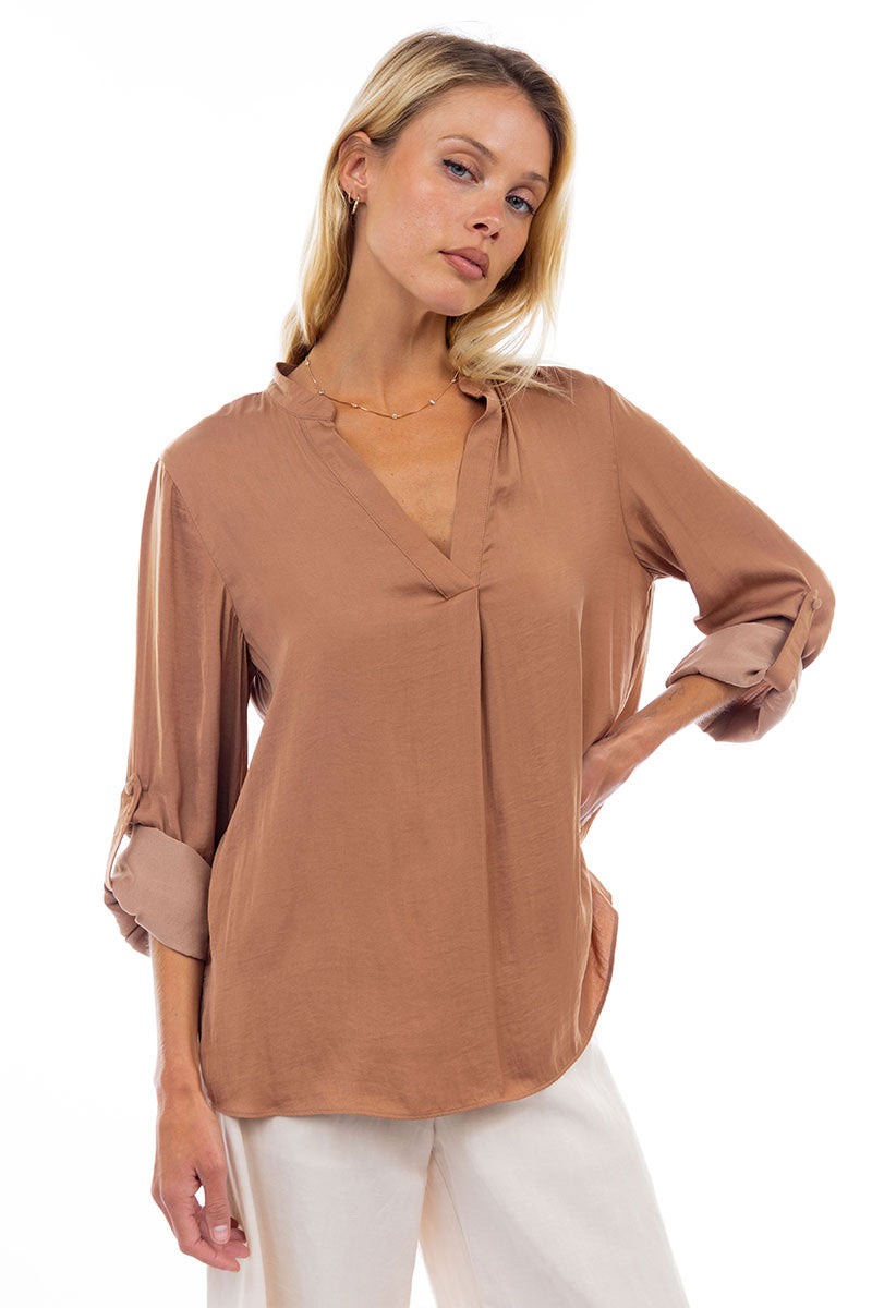 V Neck Collar Band Blouse