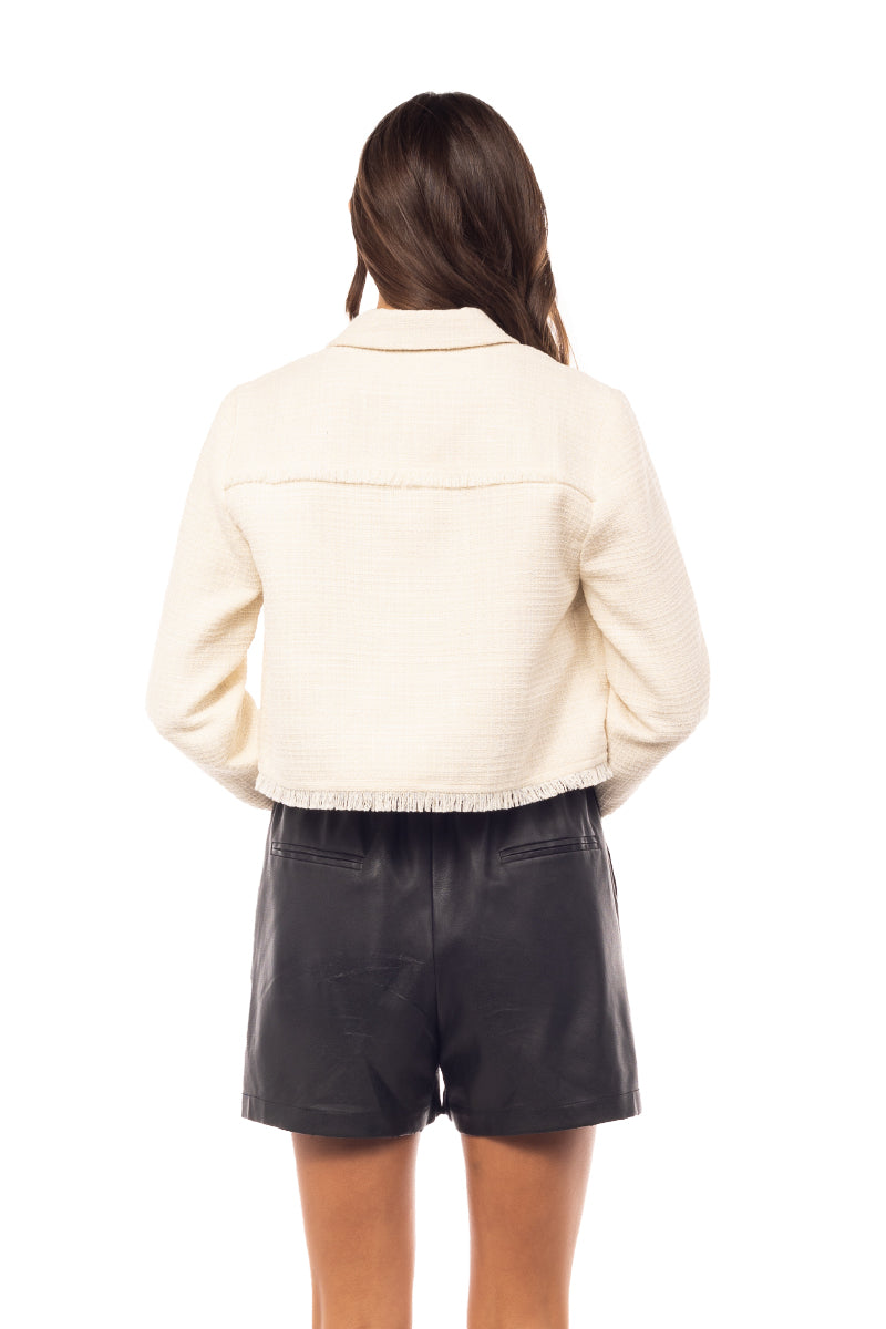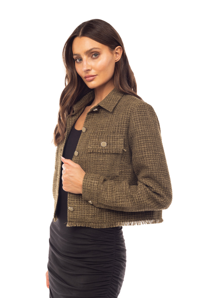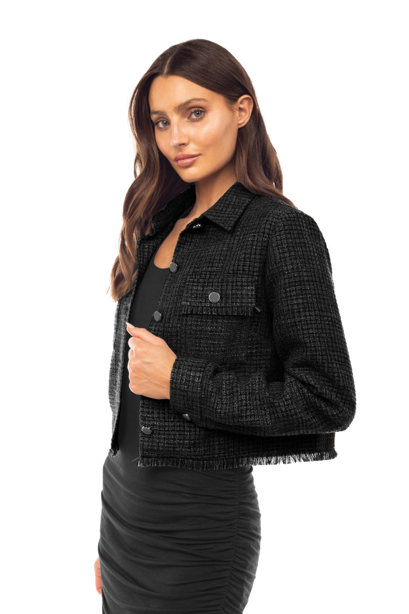 Cropped Fray Tweed Jacket