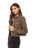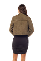 Revamp your fall fashion with our Cropped Fray Tweed Jacket, a chic and textured addition to your autumn attire. Crafted from stylish tweed fabric with a cropped design and frayed edges, this jacket effortlessly adds sophistication and flair to your ensemble, making it a fashionable choice for various fall occasions.