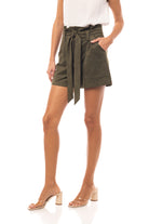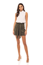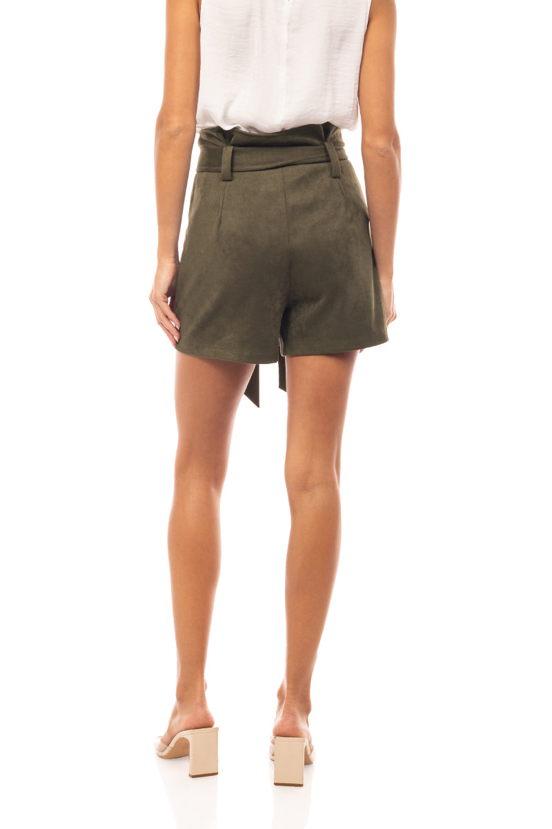 High Waisted Suede Shorts With Large Front Pockets And Belt