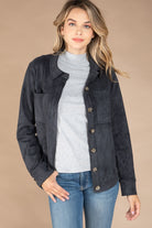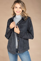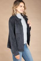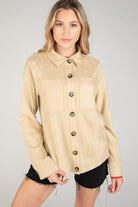 Faux Suede Button Down Jacket