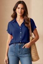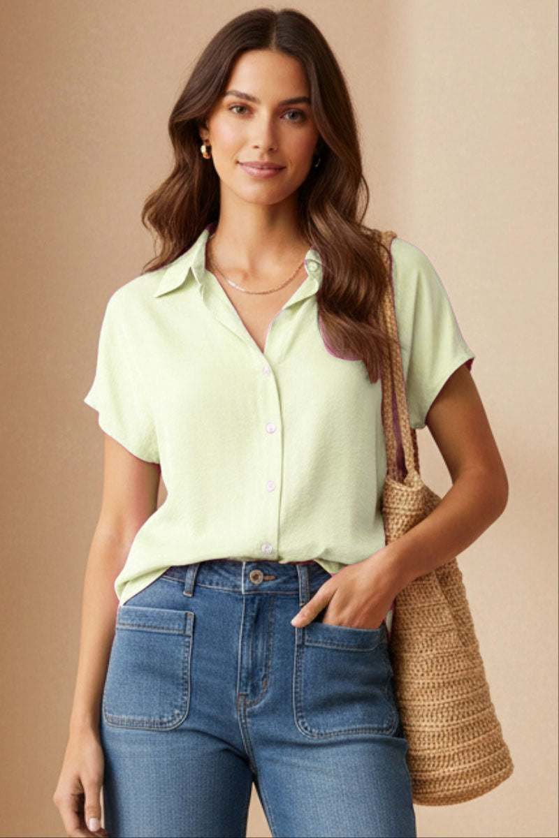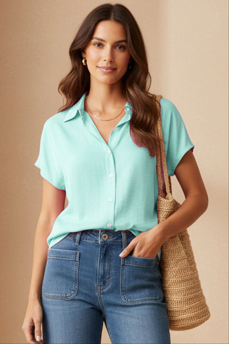 ╴Women's Minimalist Drop Shoulder Button Up Blouse