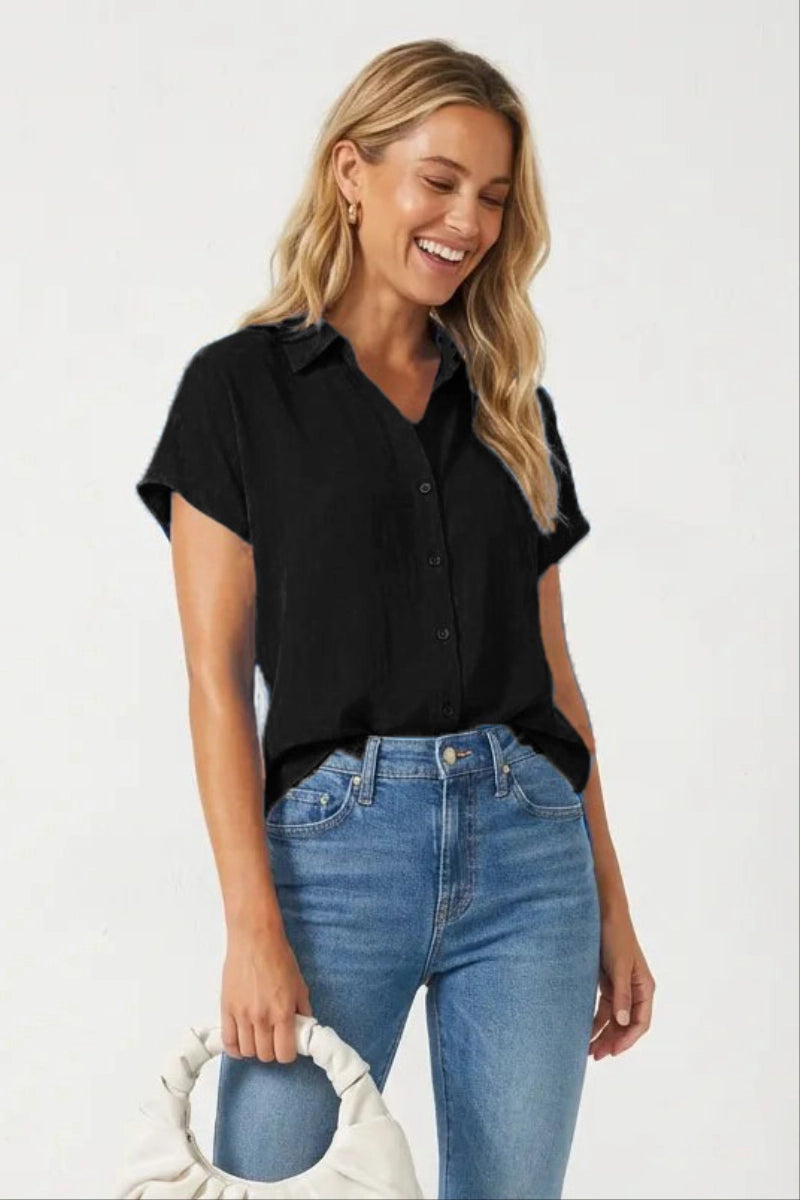 Minimalist Drop Shoulder Button Up Blouse