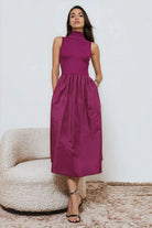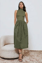 ╴Women's Sleeveless Mock Neck Maxi Dress
