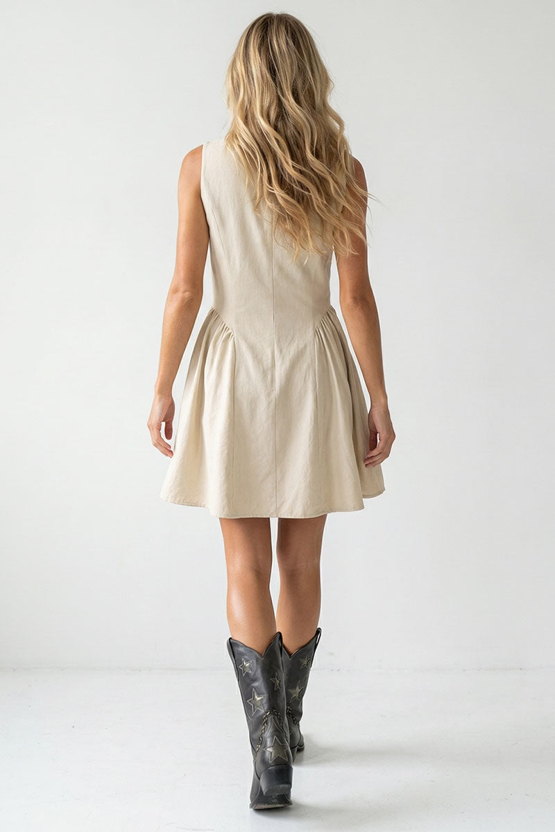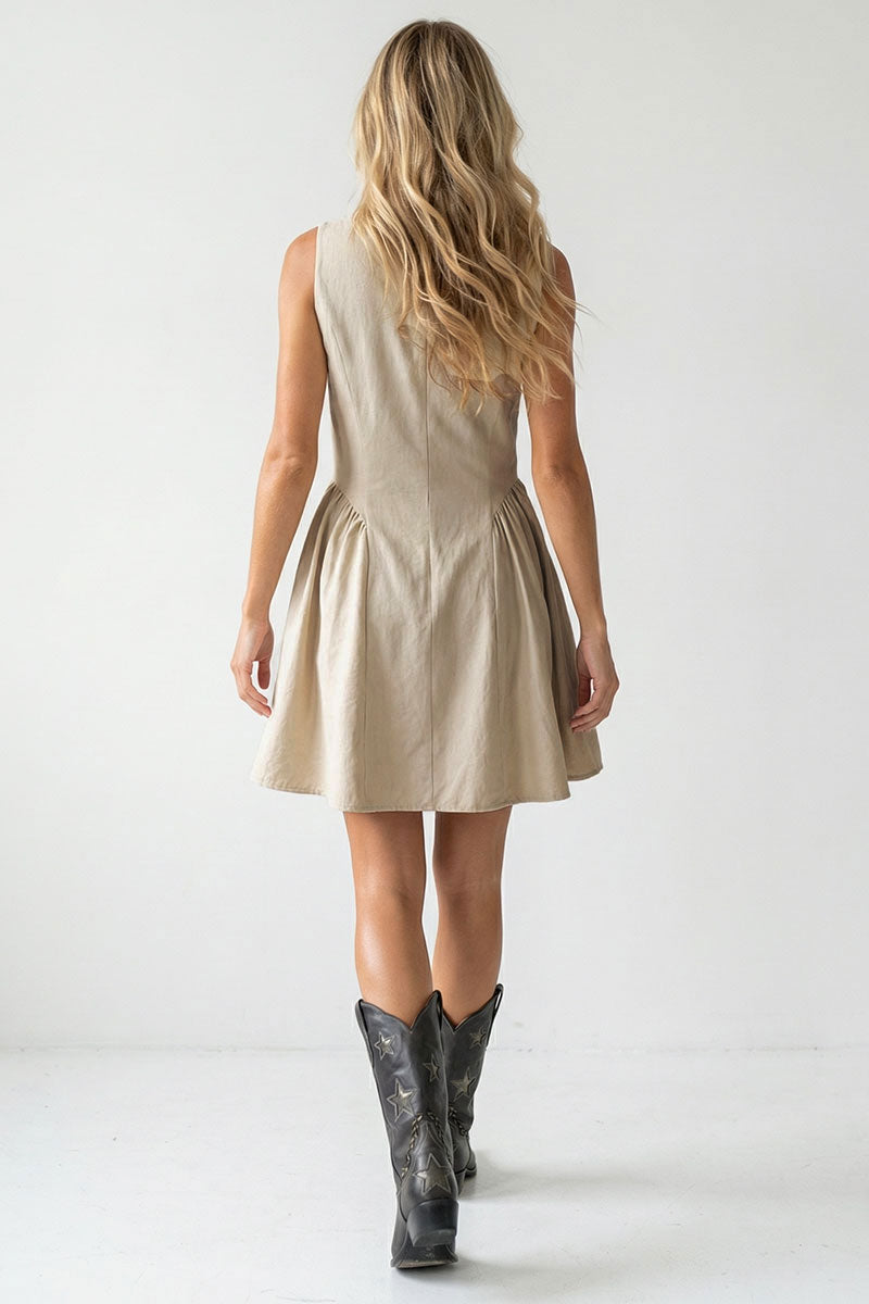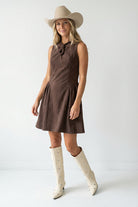 ╴Women's Soft Matte Cord Keyhole Detail Mini Dress