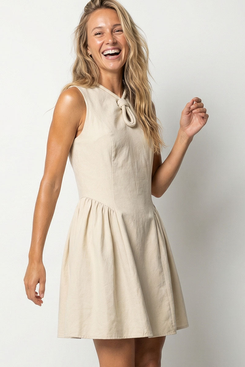 Soft Matte Cord Keyhole Detail Mini Dress