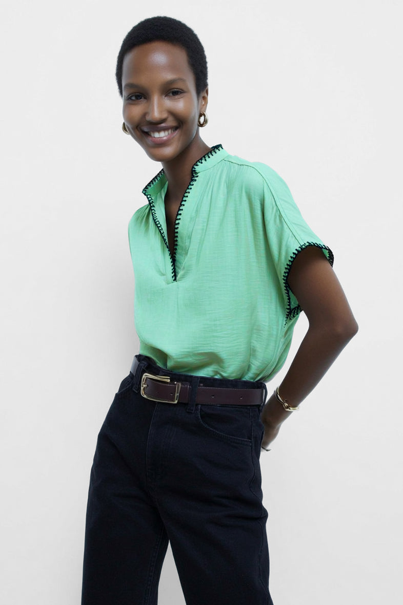 ╴Women's Whipstitch Drop Shoulder Regular Blouse