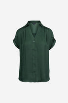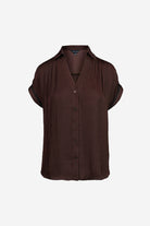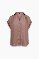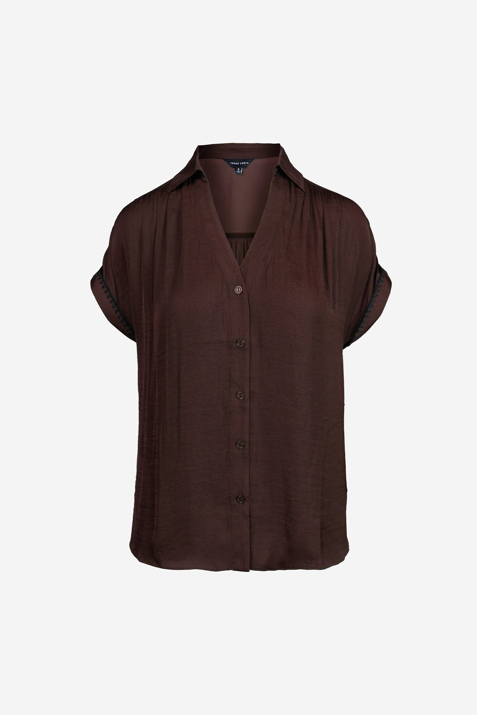 ╴Women's Whipstitch Short Sleeve Button Up Blouse