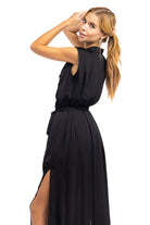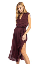 Women's Pleated Shoulder Cap Sleeve Midi Shirt Dress