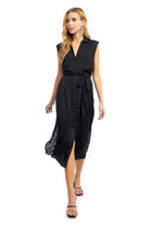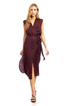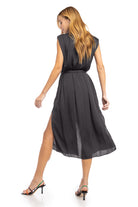 Pleated Shoulder Cap Sleeve Midi Shirt Dress