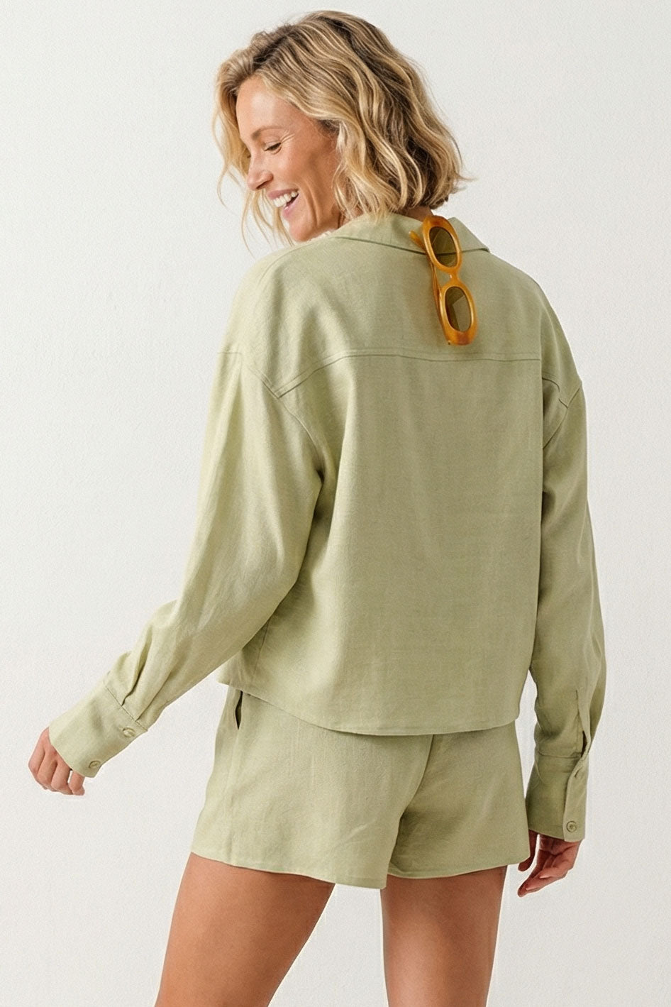 • Long sleeves with a classic collared design for a polished, relaxed look.