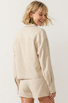 • Front pocket detail for added functionality and style.
