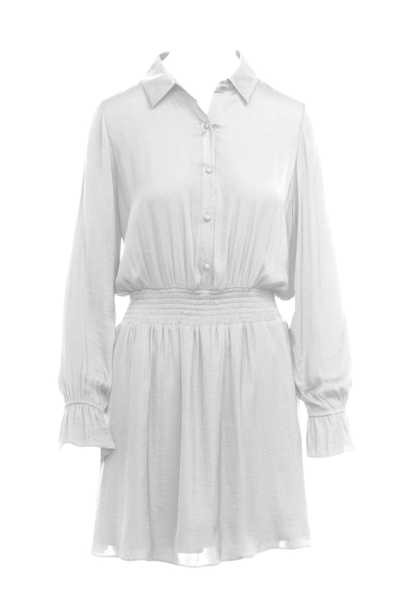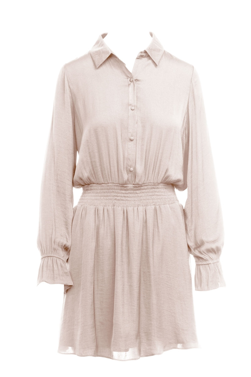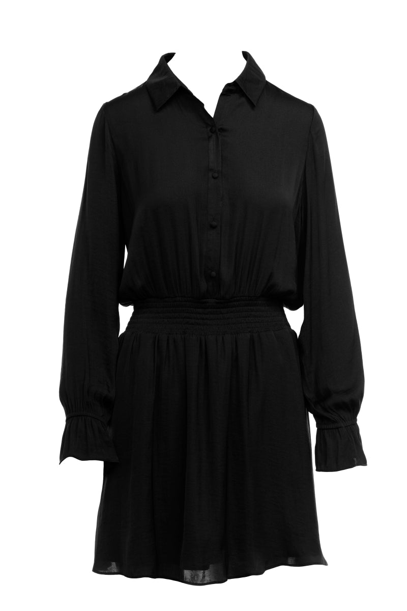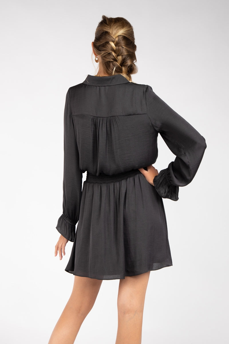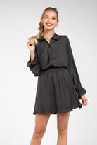Long Sleeve Flare Mini Dress With Partial Placket Button Down With Elasticized Waist - Graphite is backordered and will ship as soon as it is back in stock.