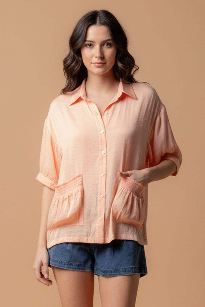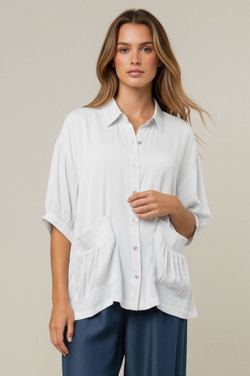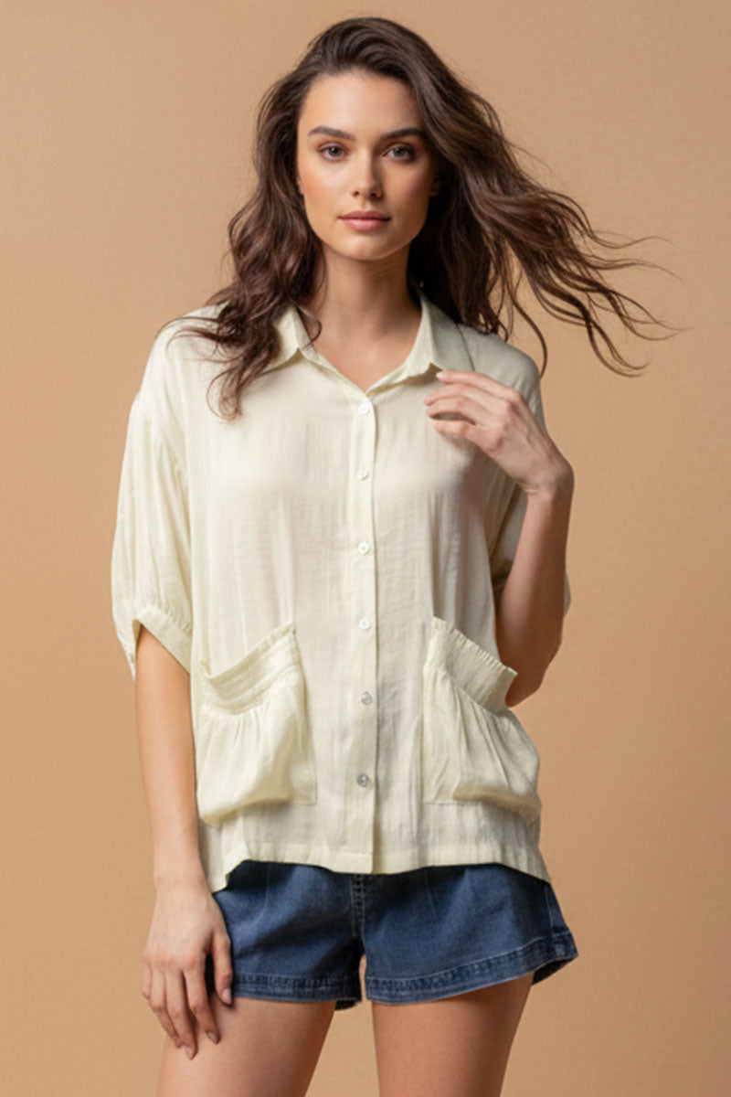 Oversized Boxy Shirt With Front Patch Pockets