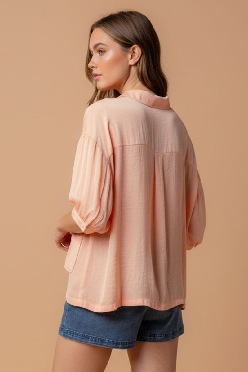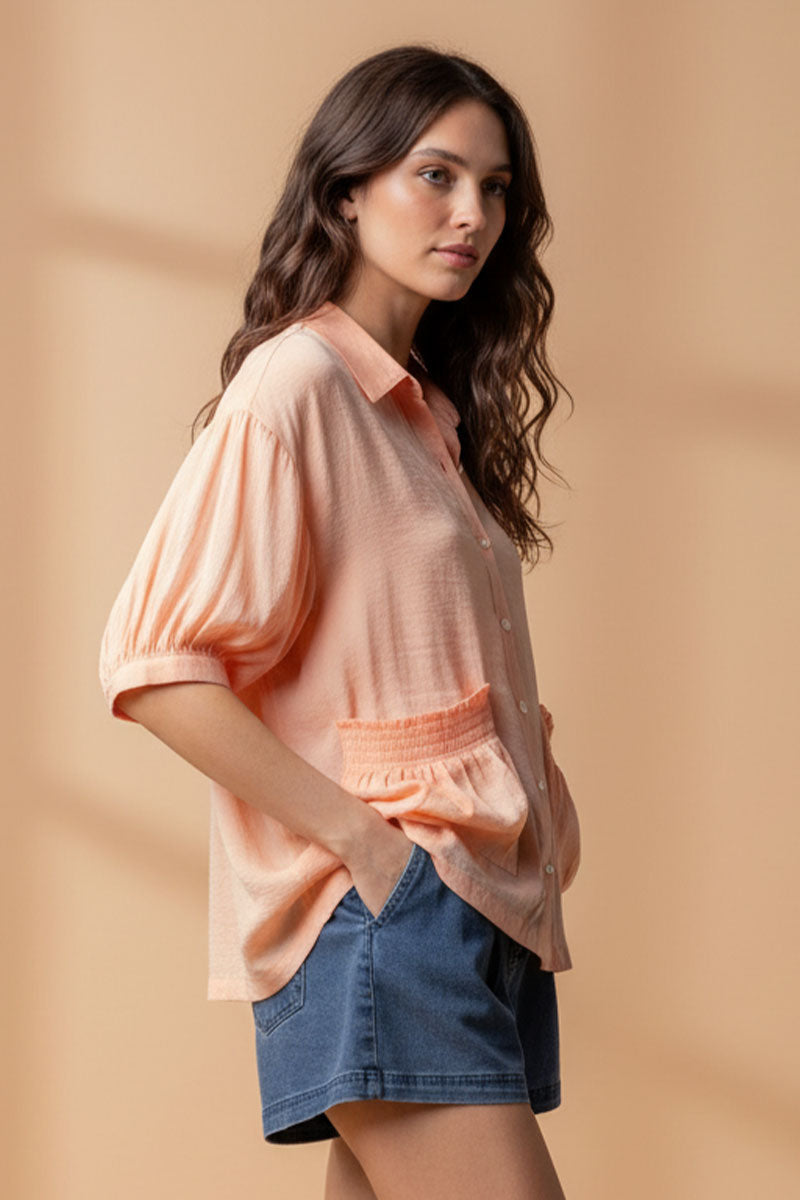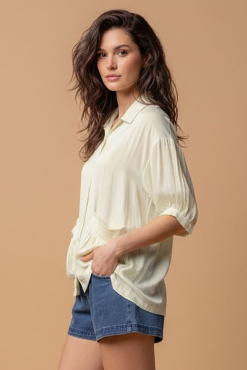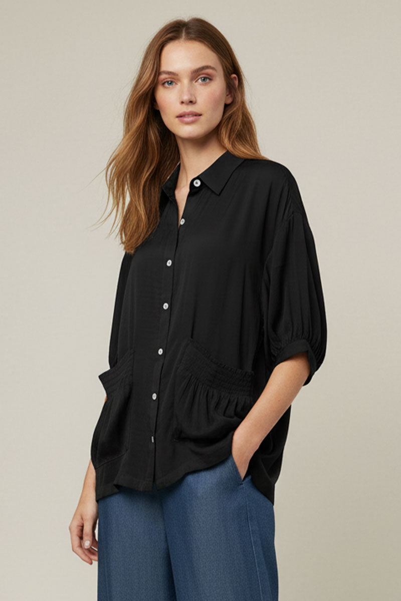 Oversized Boxy Shirt With Front Patch Pockets
