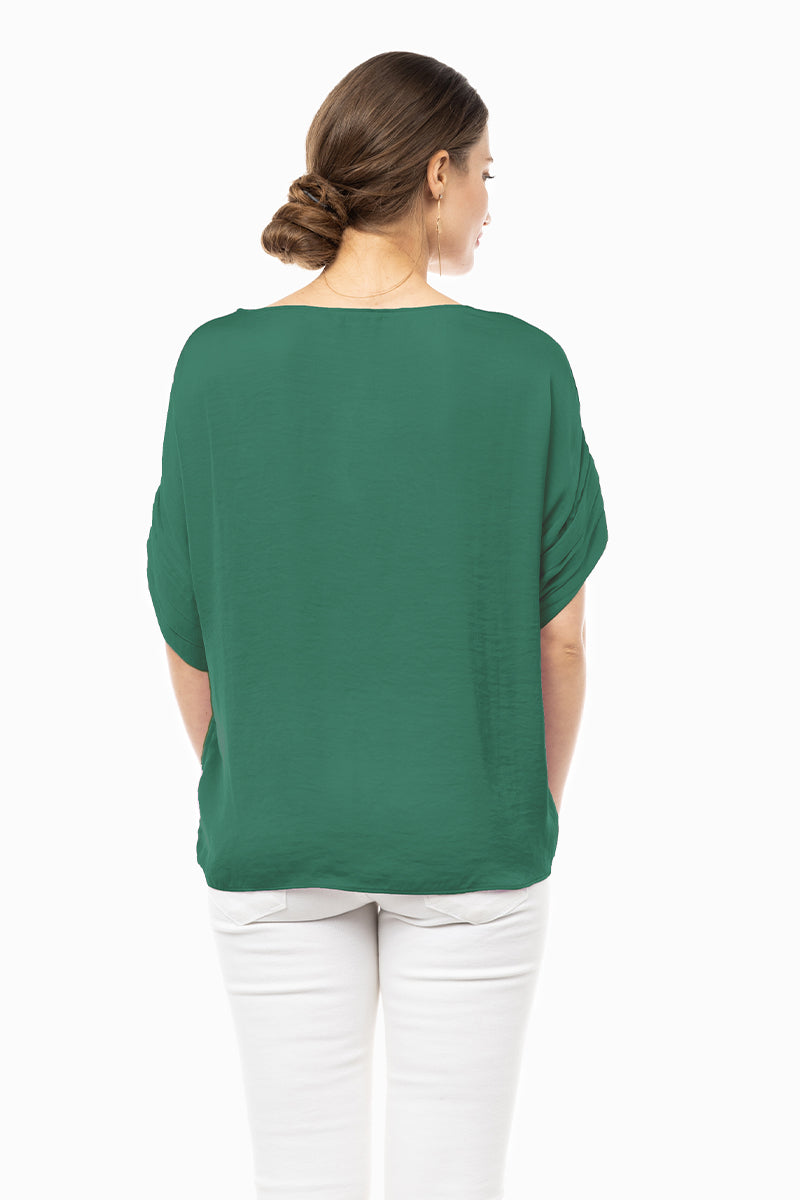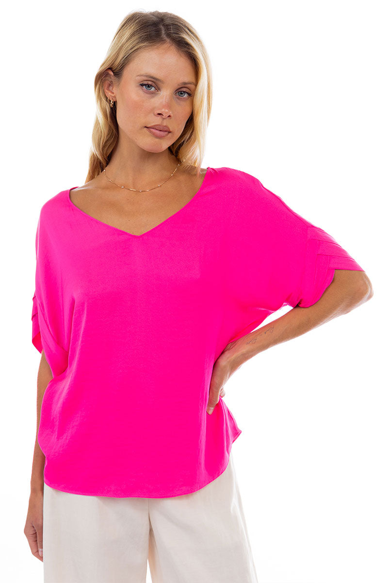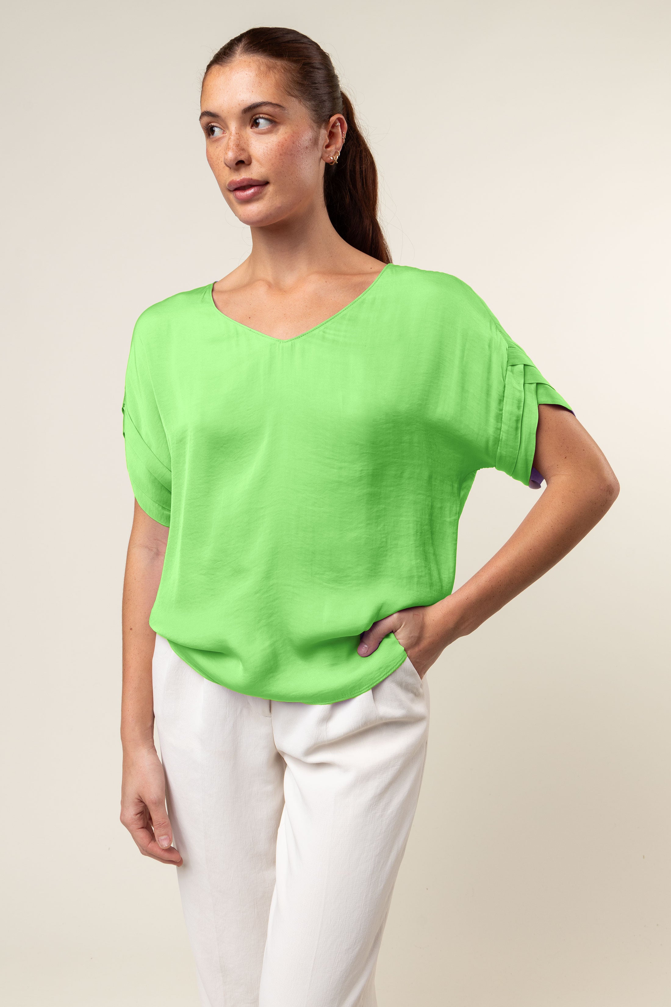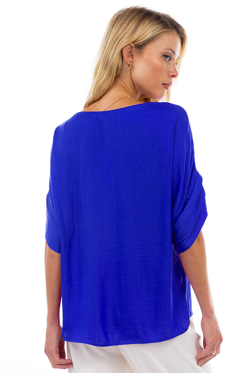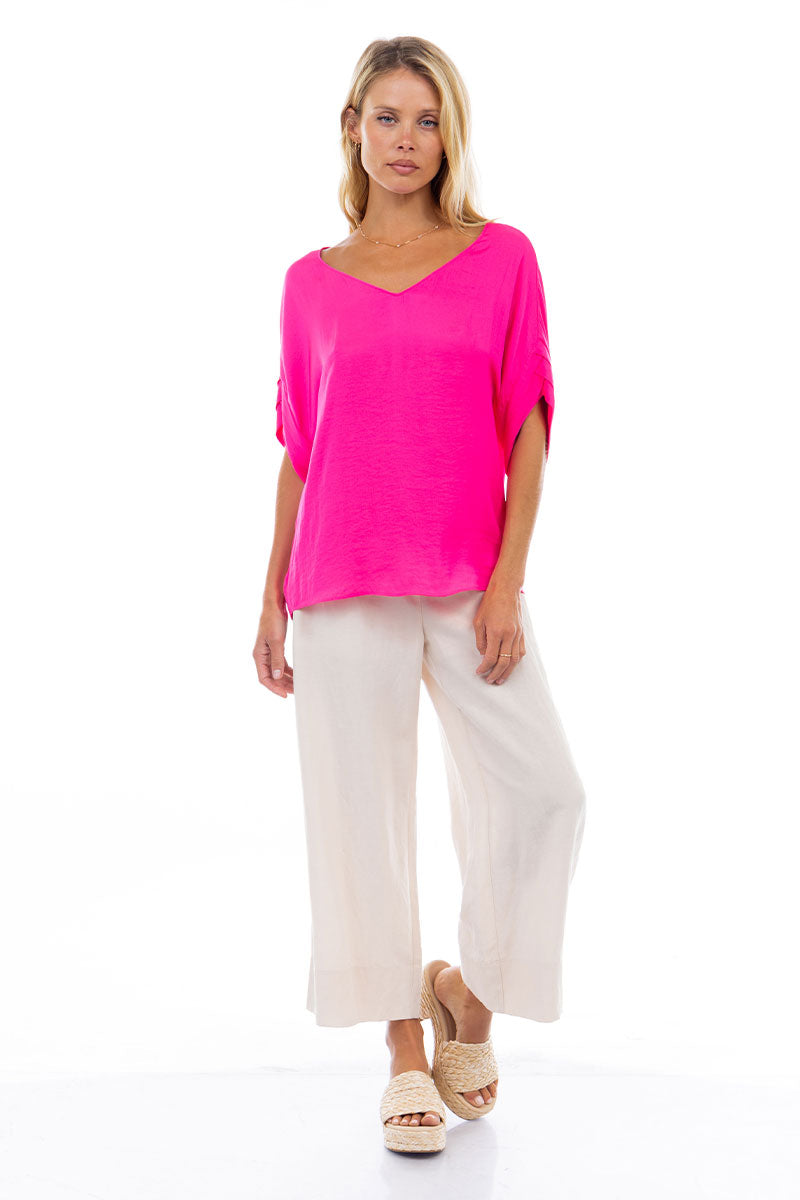 V-Neck Satin Top With Self Bands Sleeve Detail