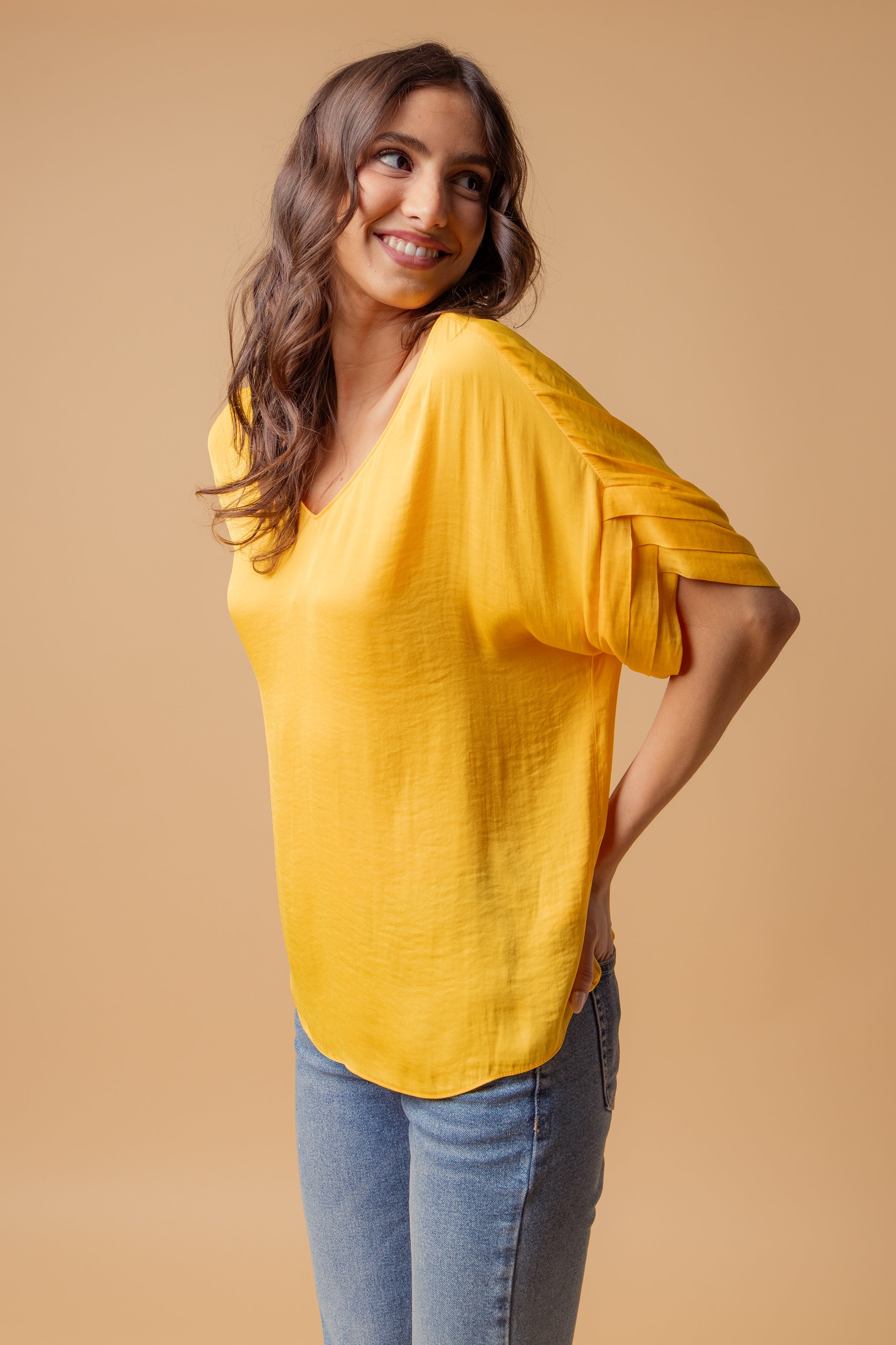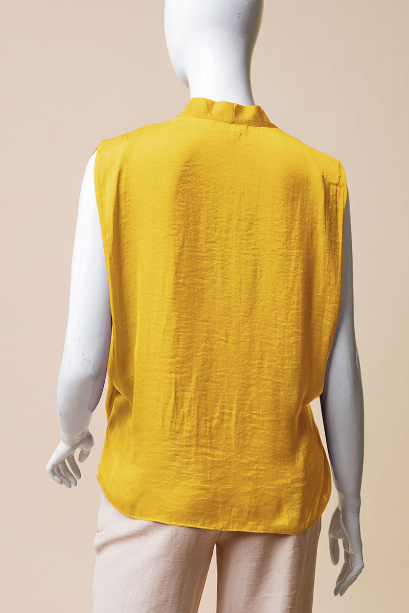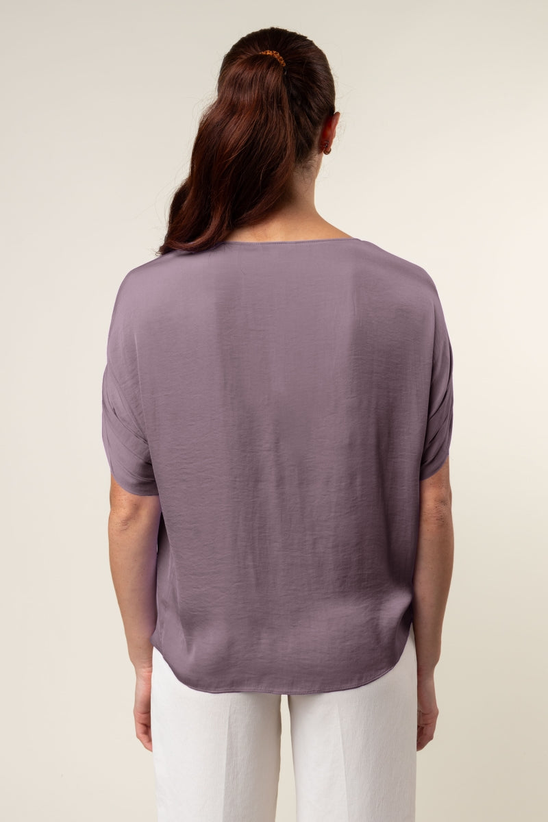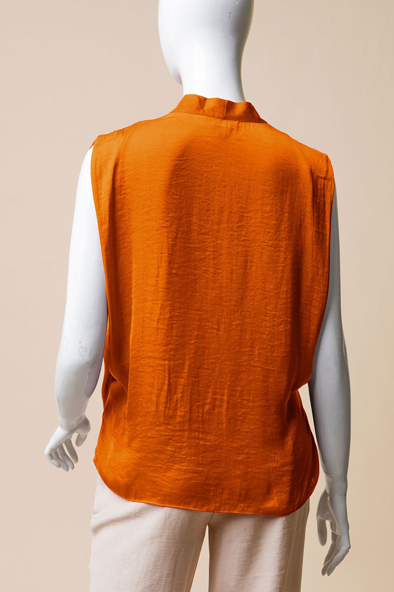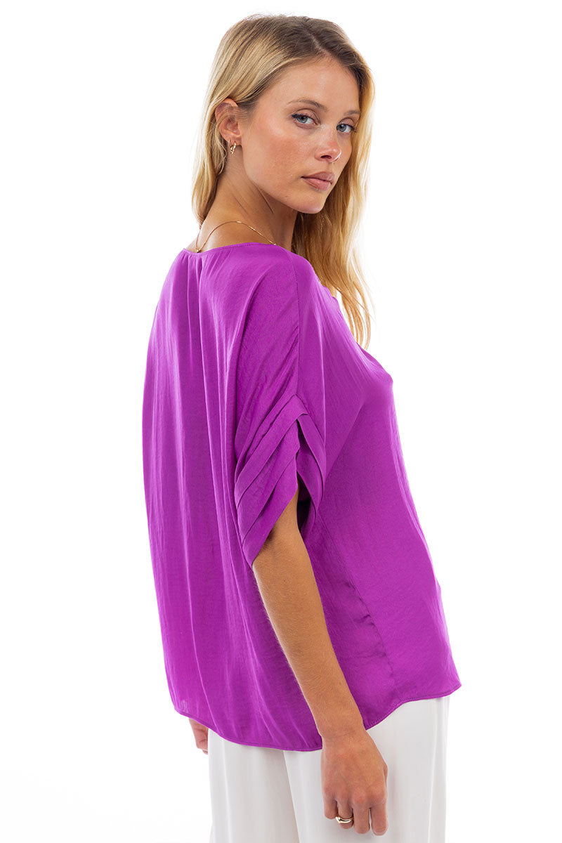V-Neck Satin Top With Self Bands Sleeve Detail
