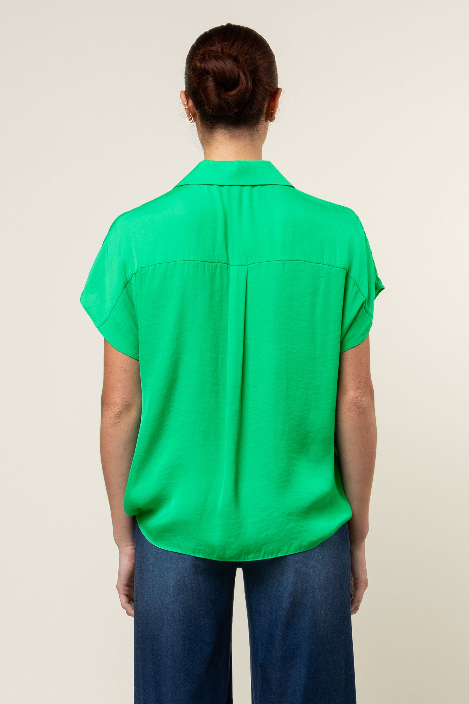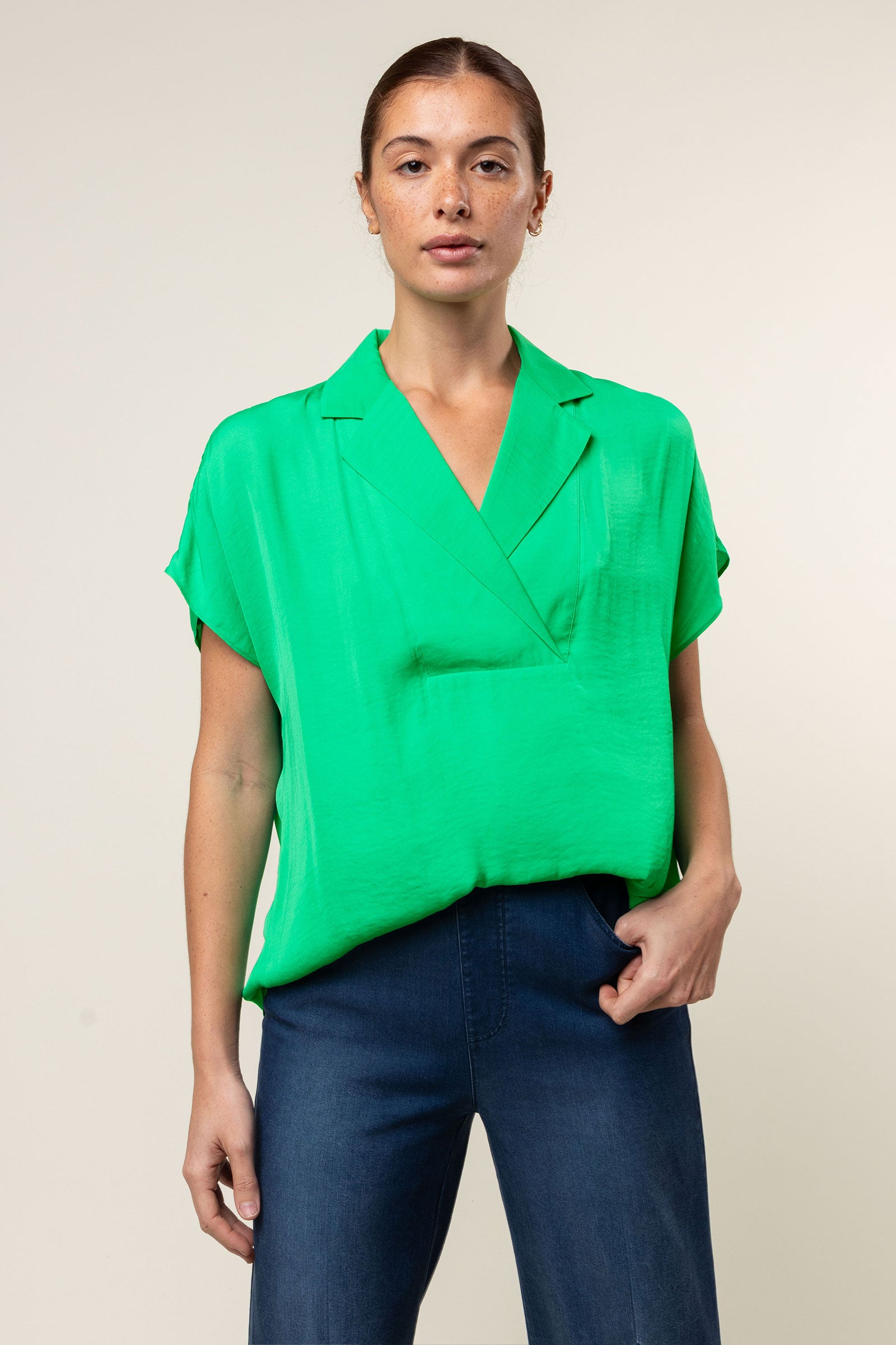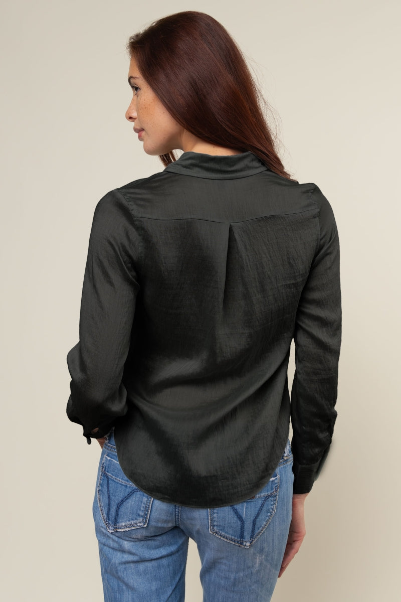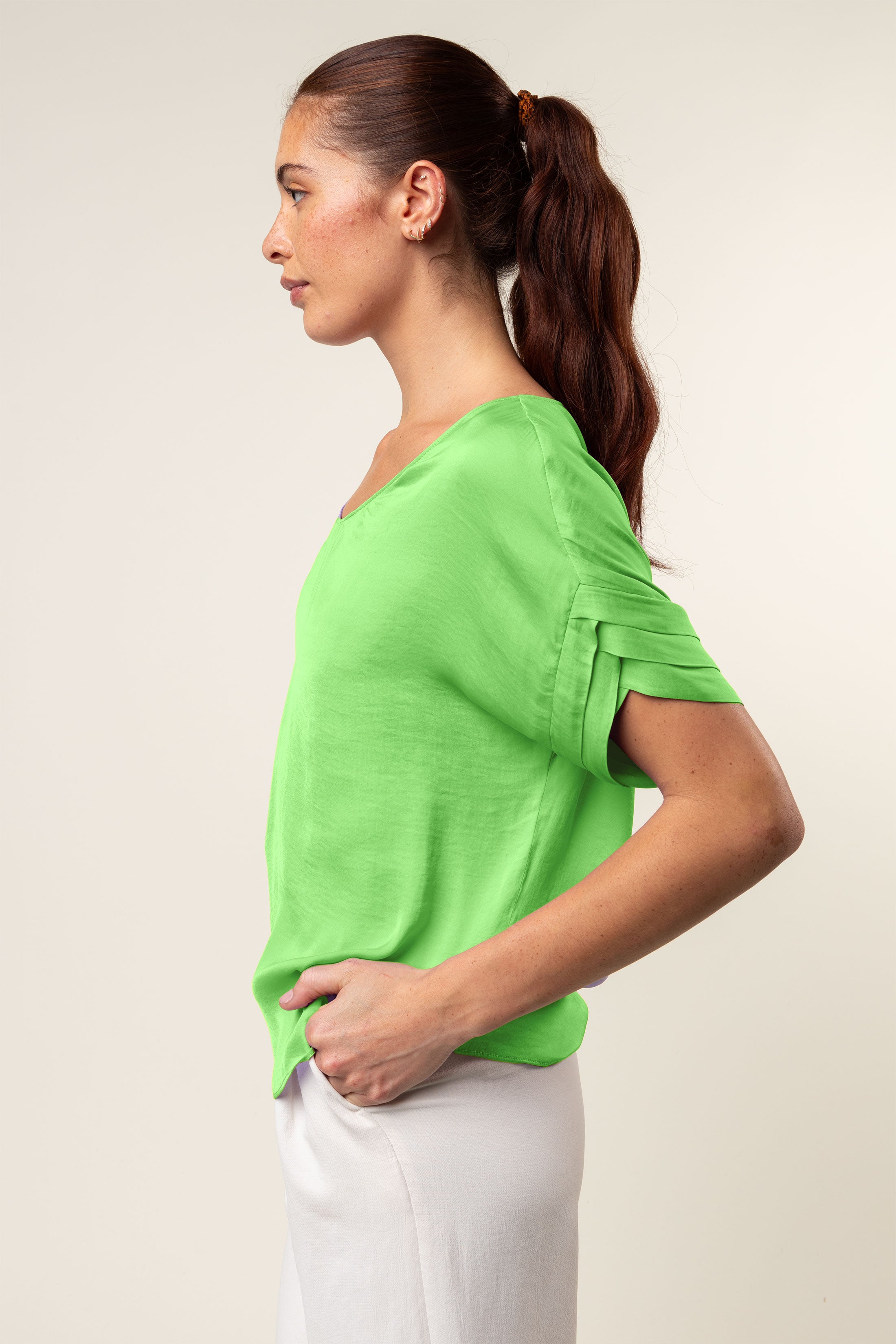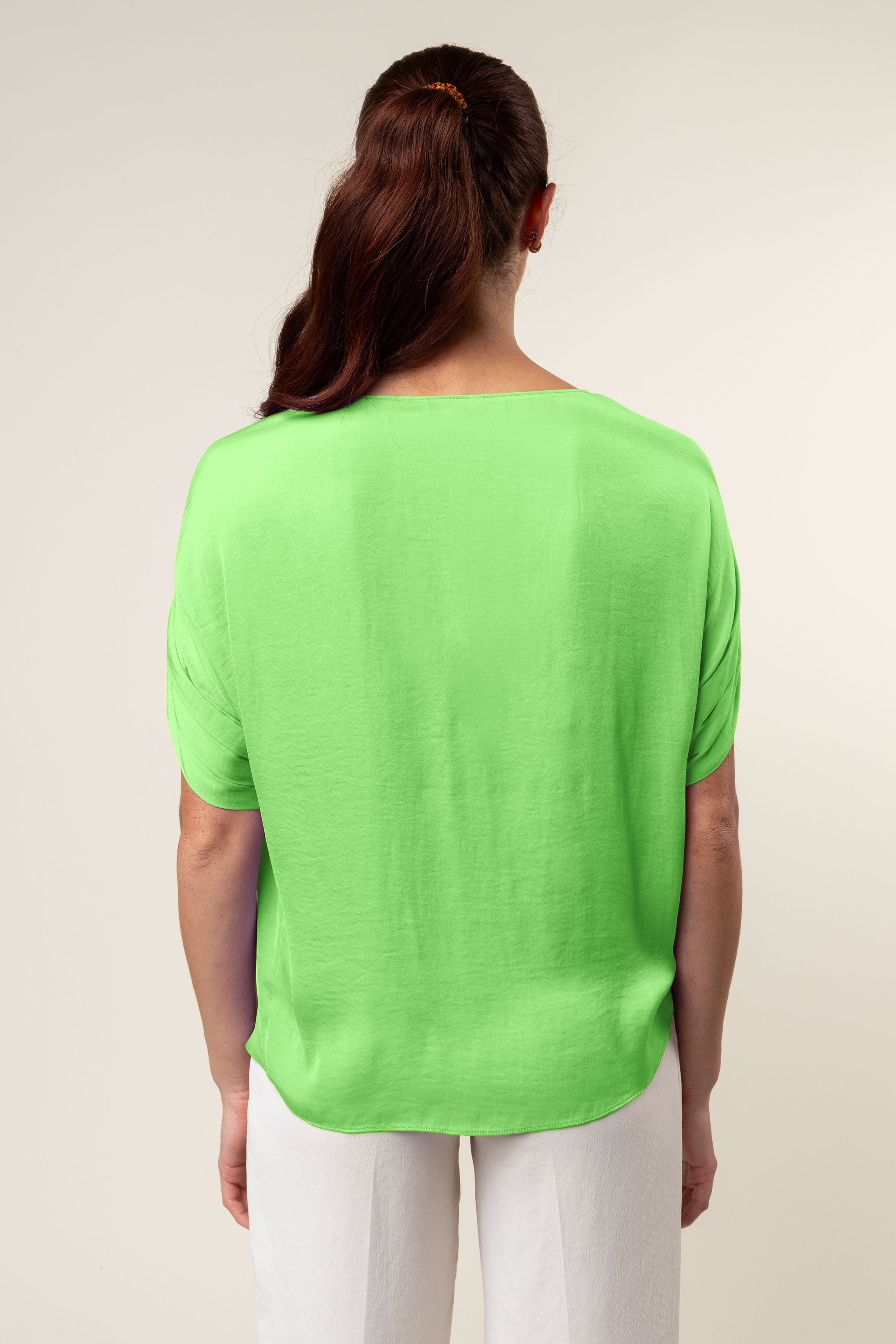 V-Neck Satin Top With Self Bands Sleeve Detail