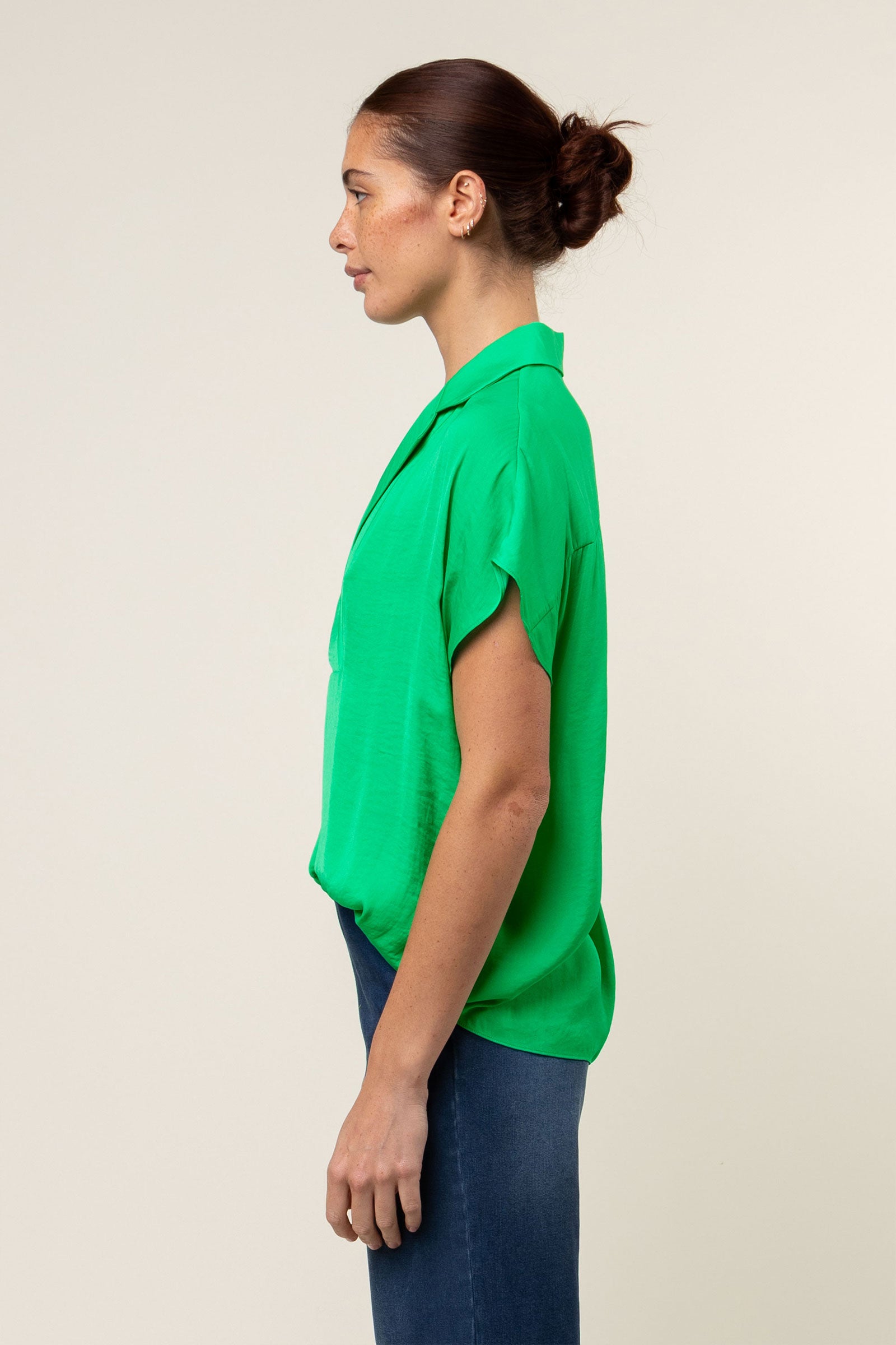 Short Sleeve Convertible Collar Blouse