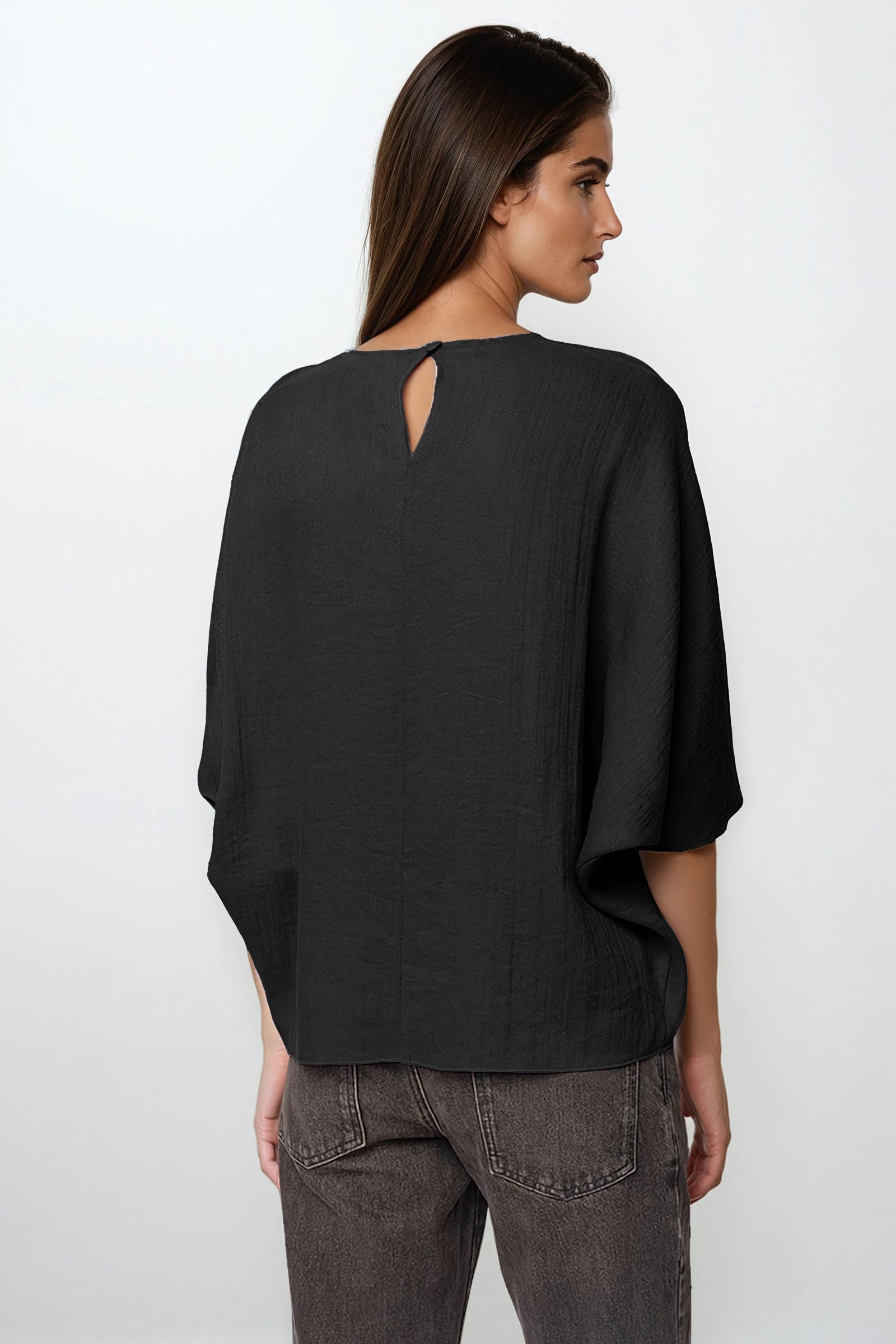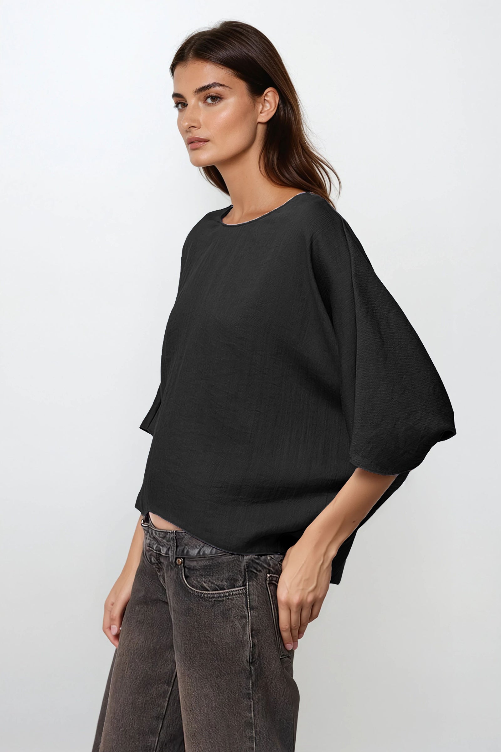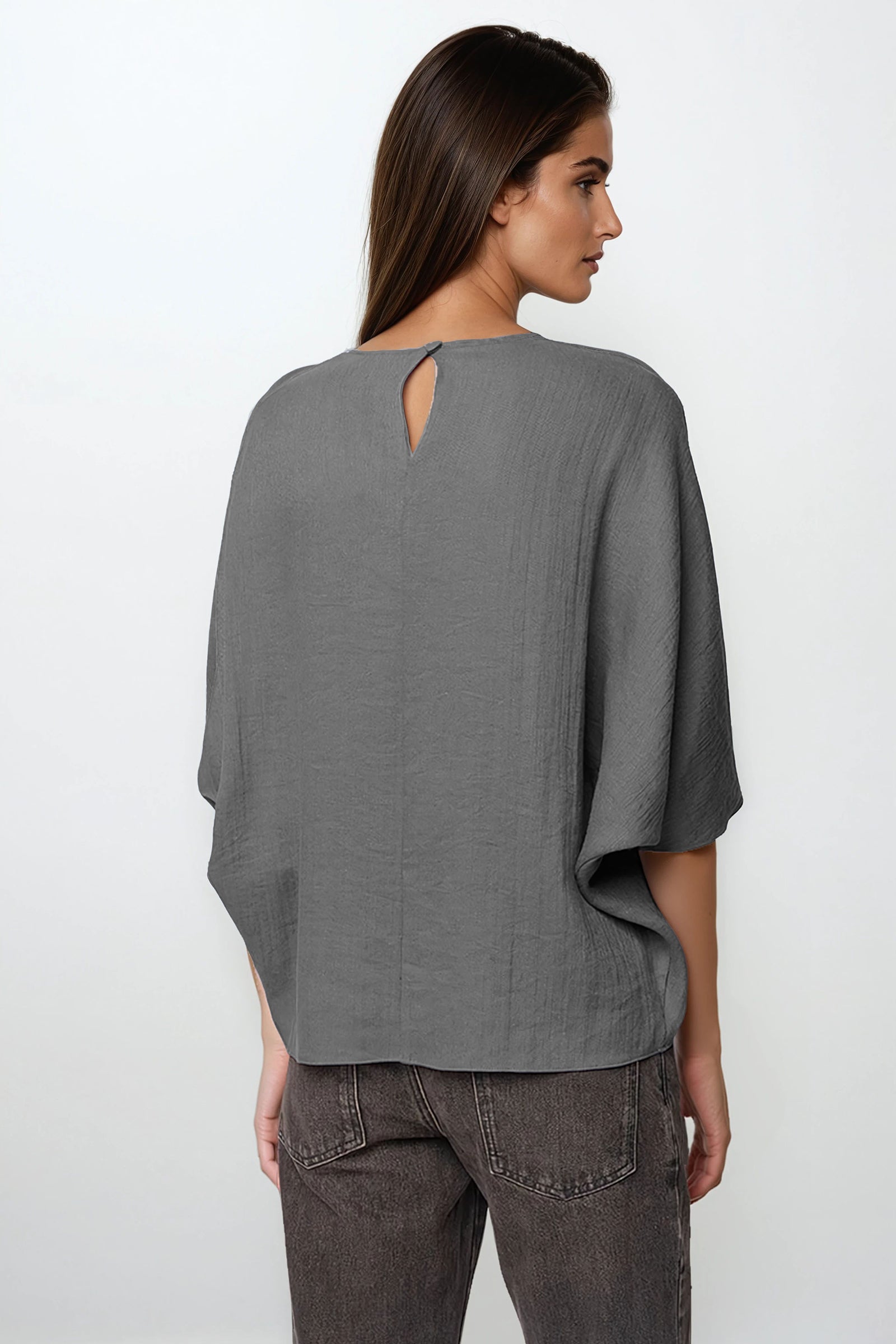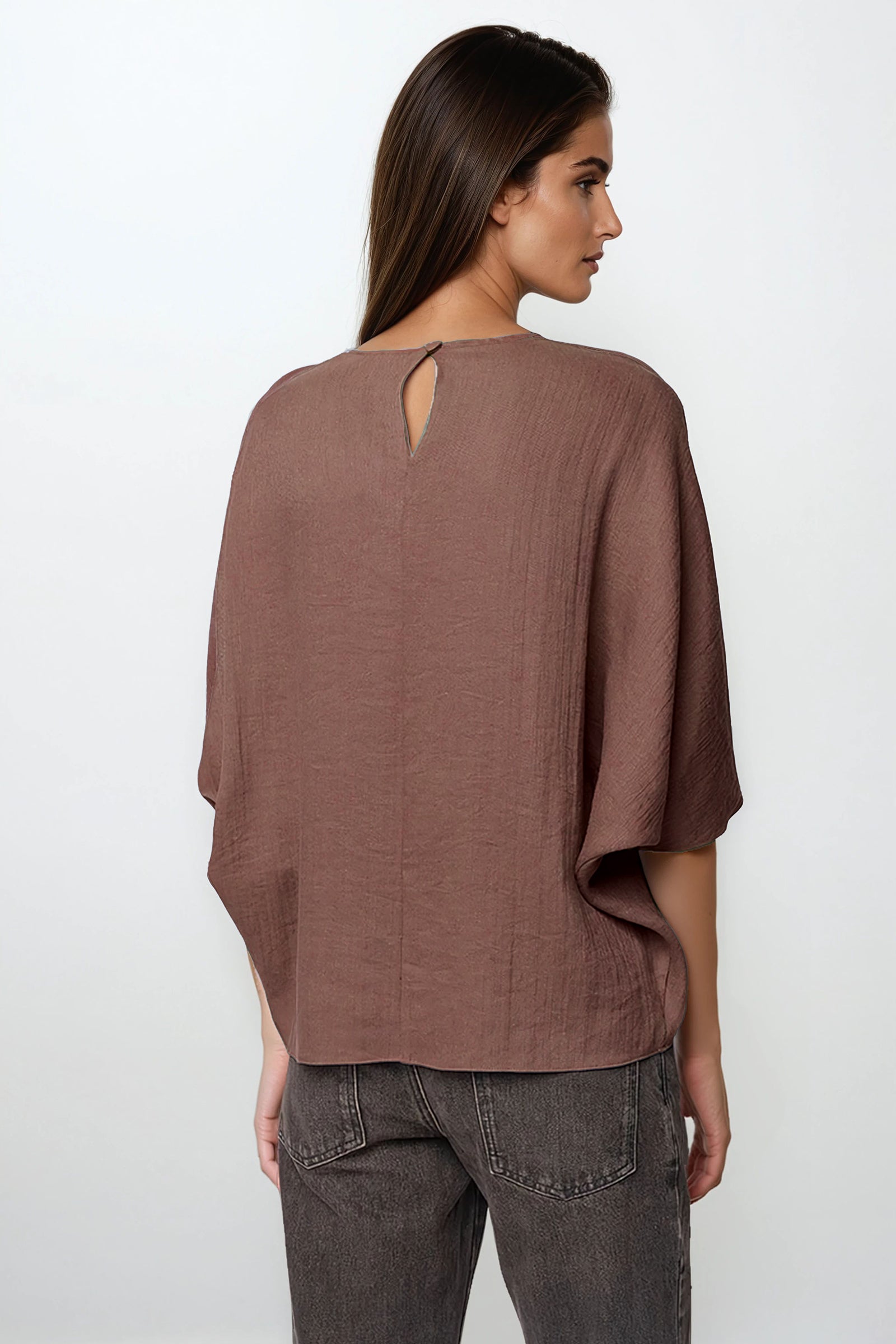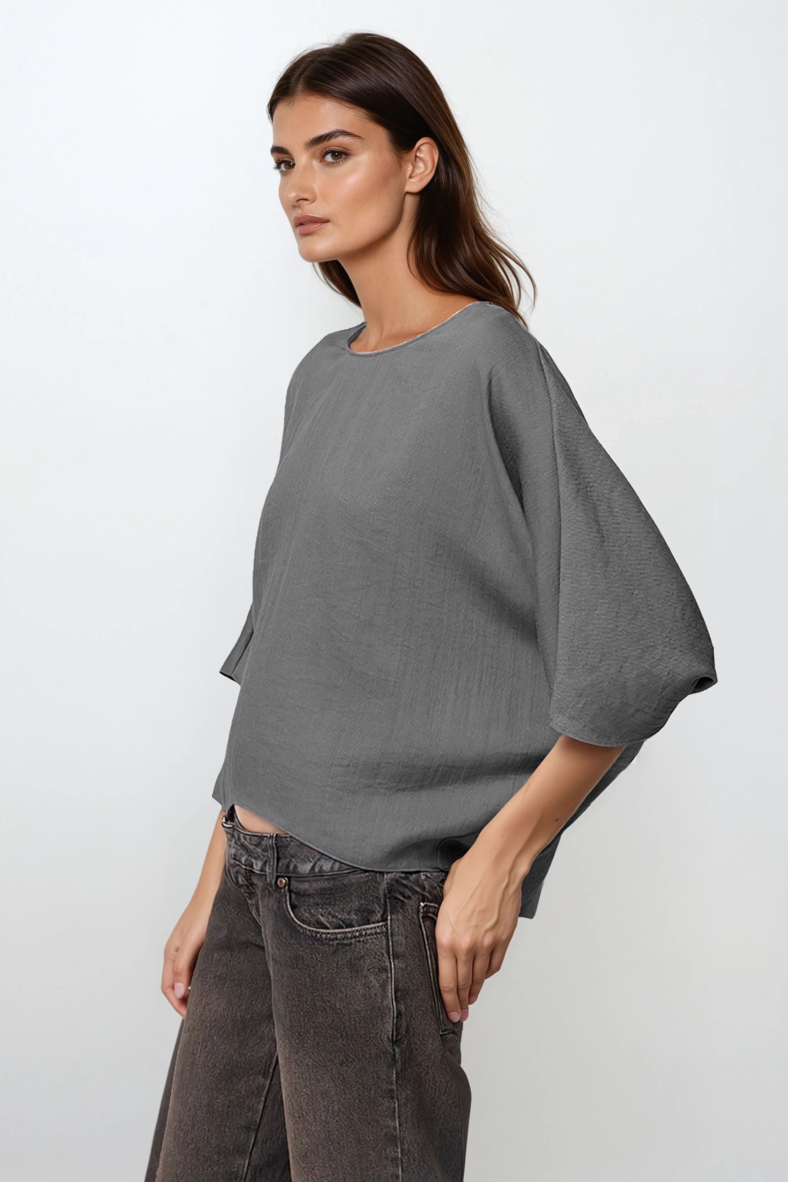 Hemp Blend 3/4 Sleeve Batwing Blouse