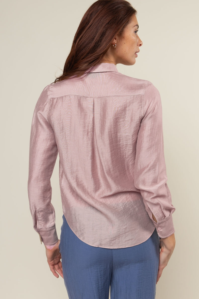 Collared Blouse With Button Accent