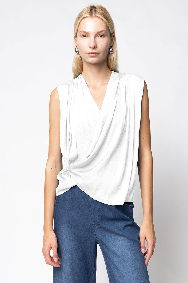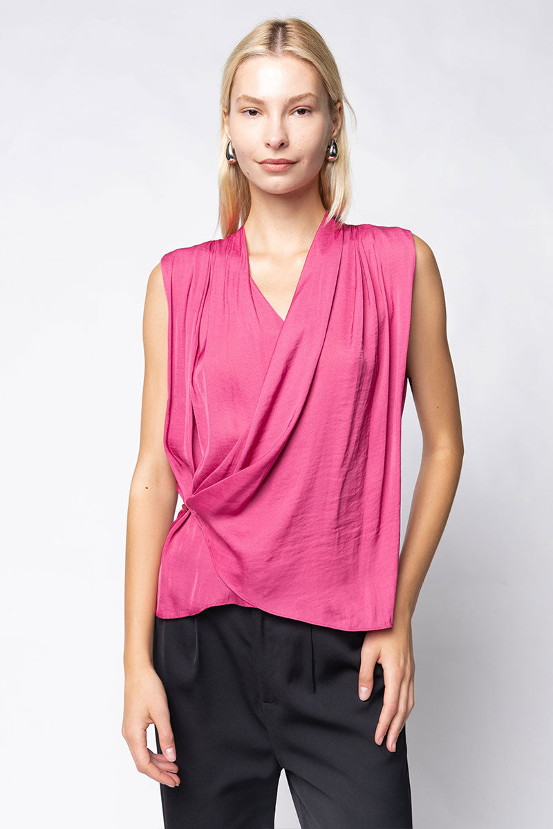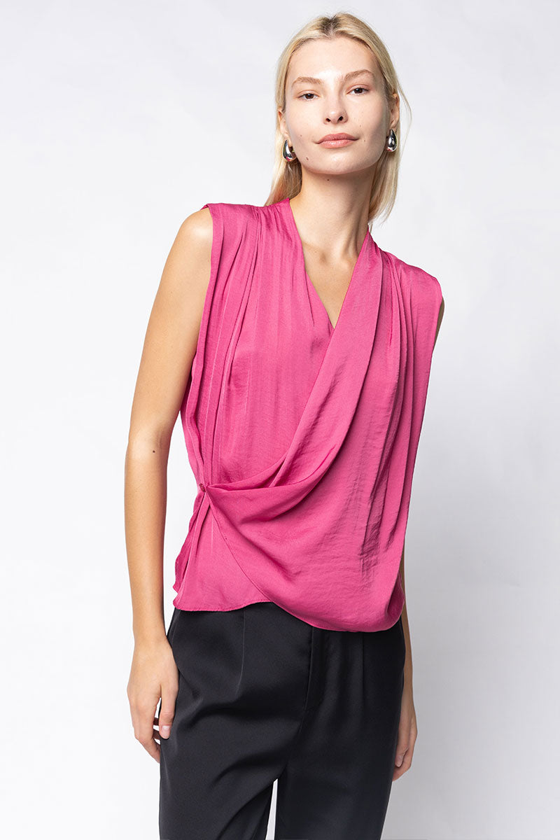 Sleeveless Wrap Top With Side Button Closure
