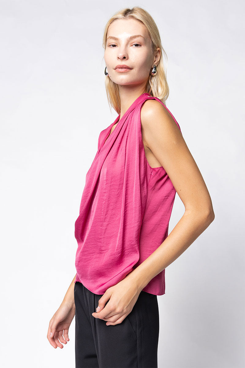 Padded Shoulder Satin Tank