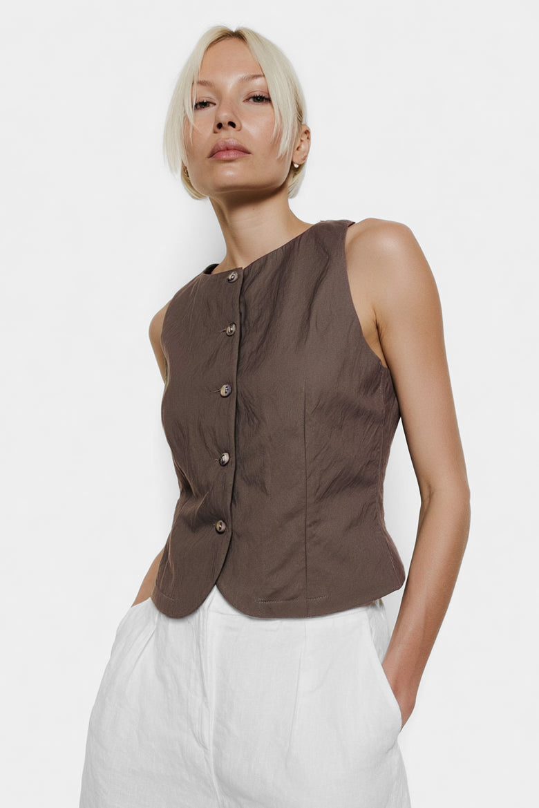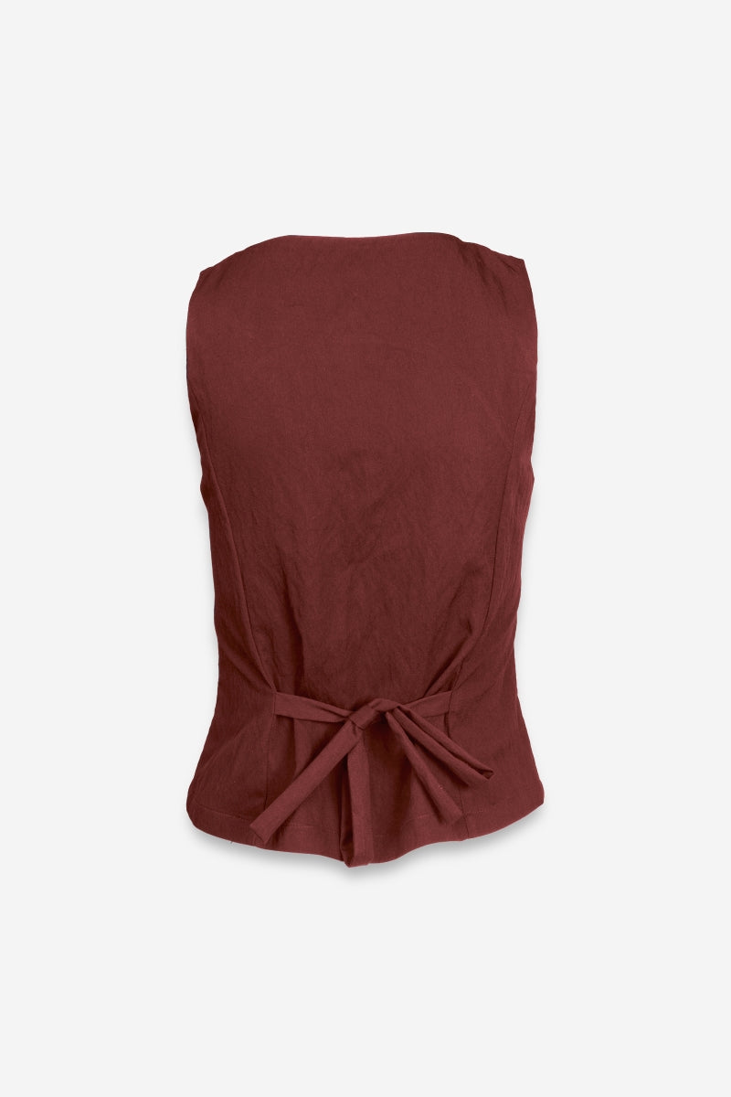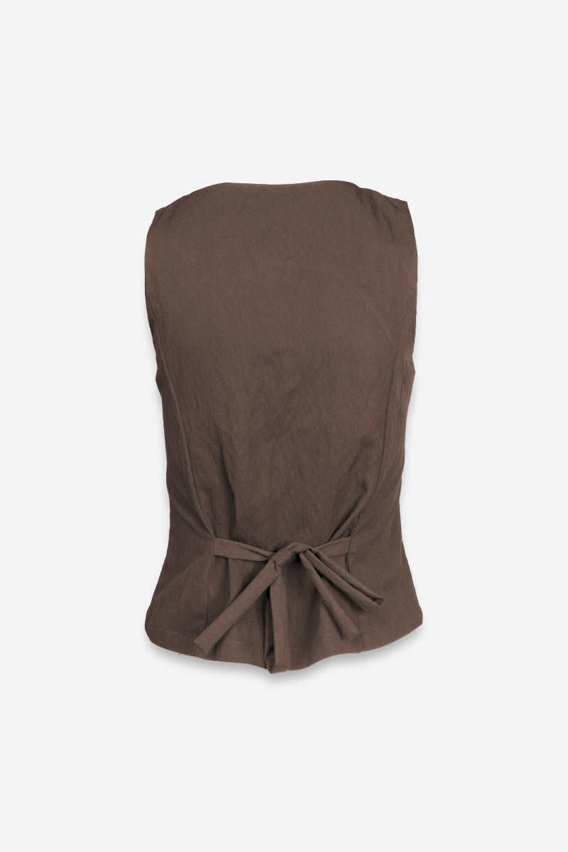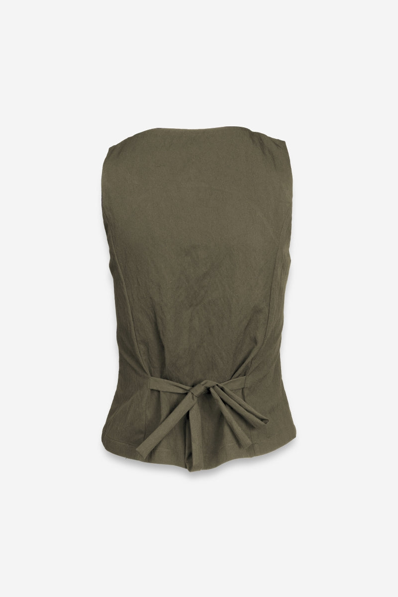 Sleeveless Woven Vest With Back Tie