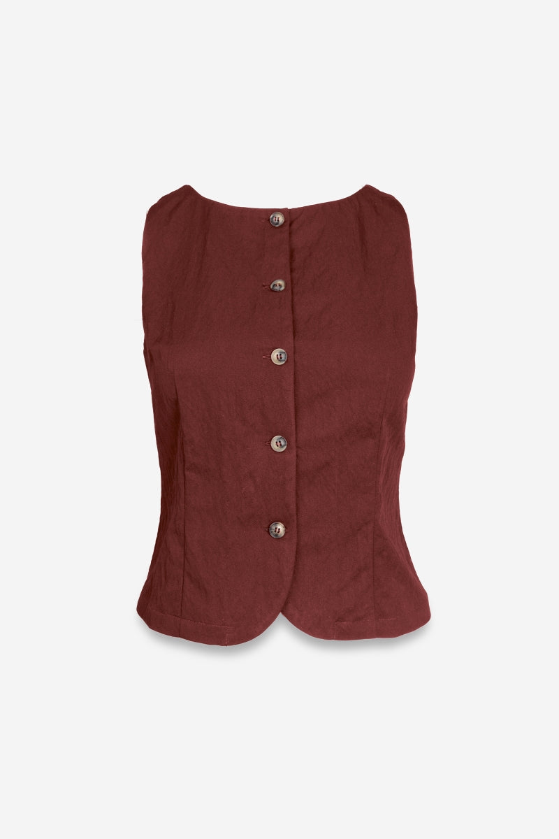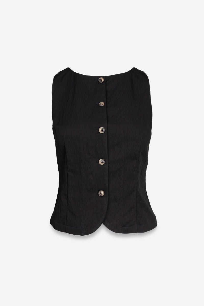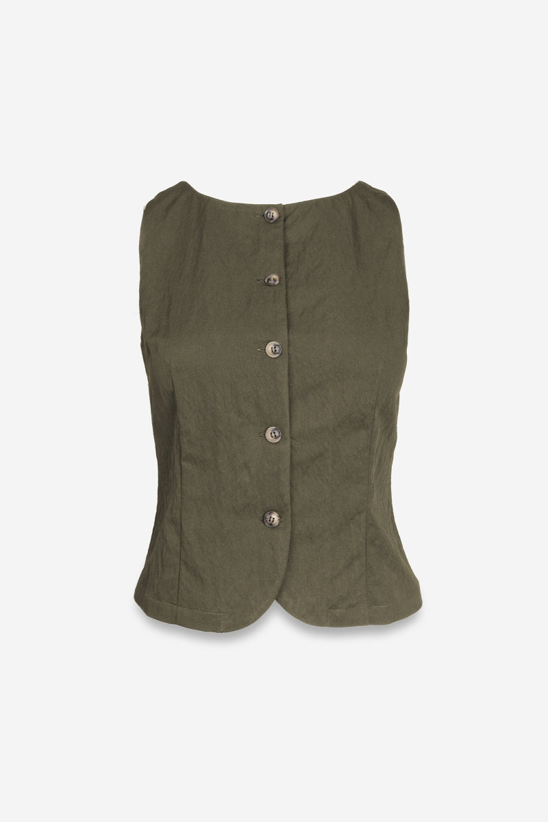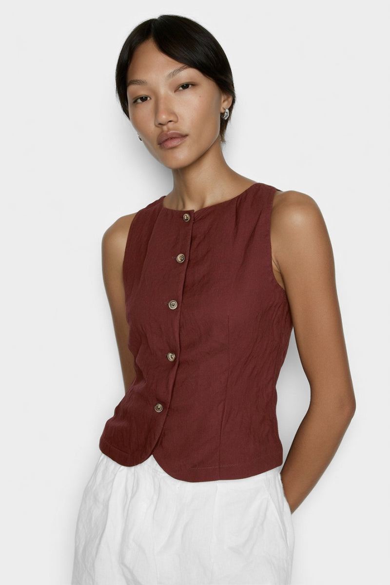 Sleeveless Woven Vest With Back Tie