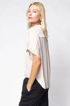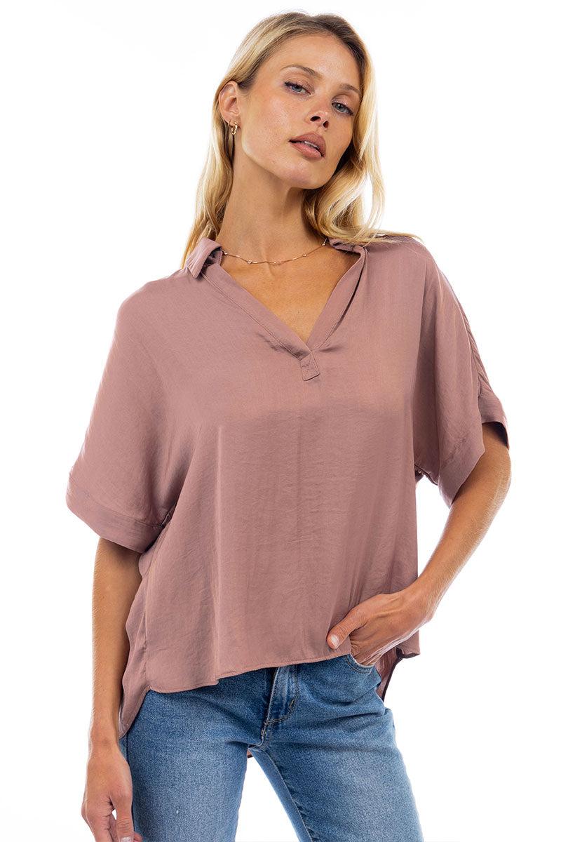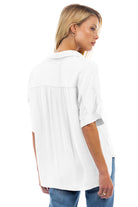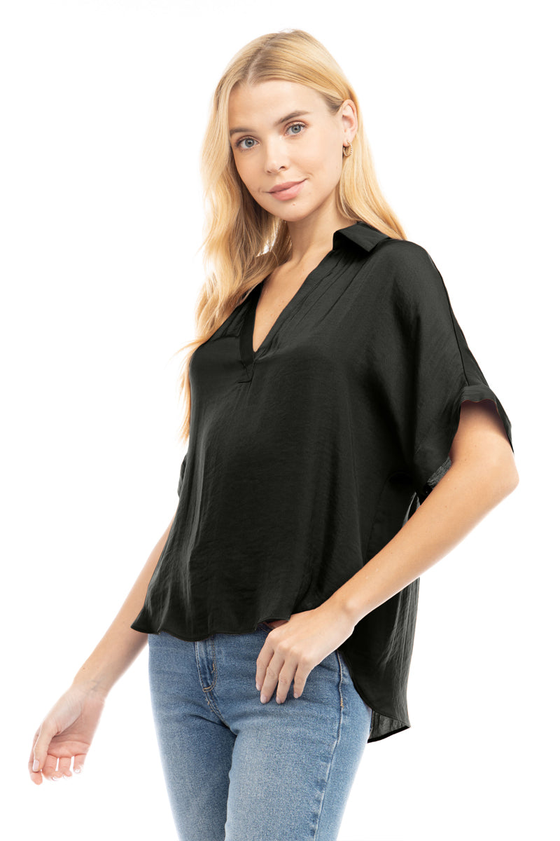 The unique high-low collar design sets this blouse apart, adding a touch of modern flair to a classic silhouette. The blouse is tailored to flatter your figure without being too tight, ensuring both comfort and style. Wear the blouse untucked over skinny jeans or leggings for a relaxed yet stylish outfit.