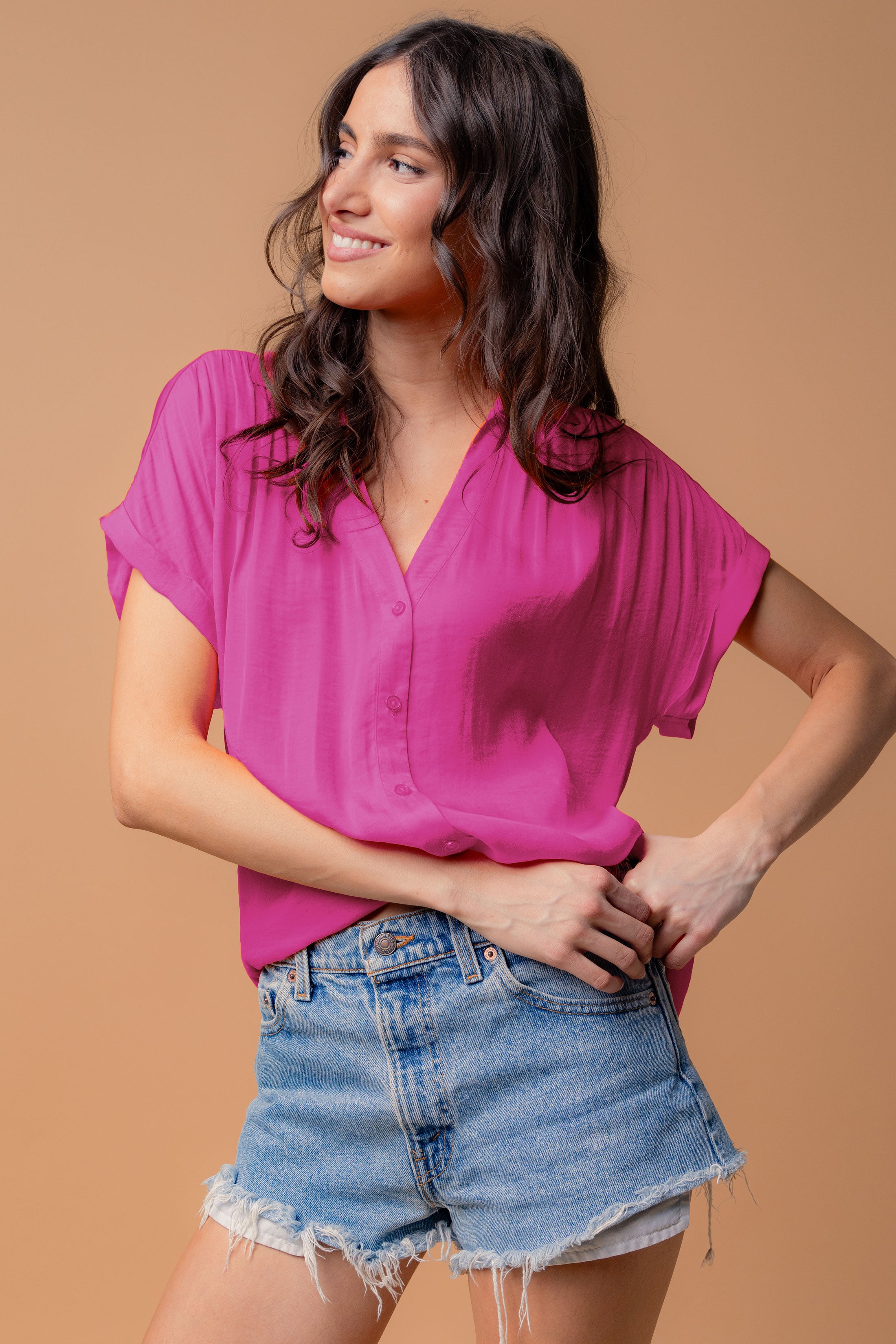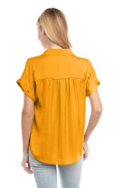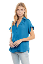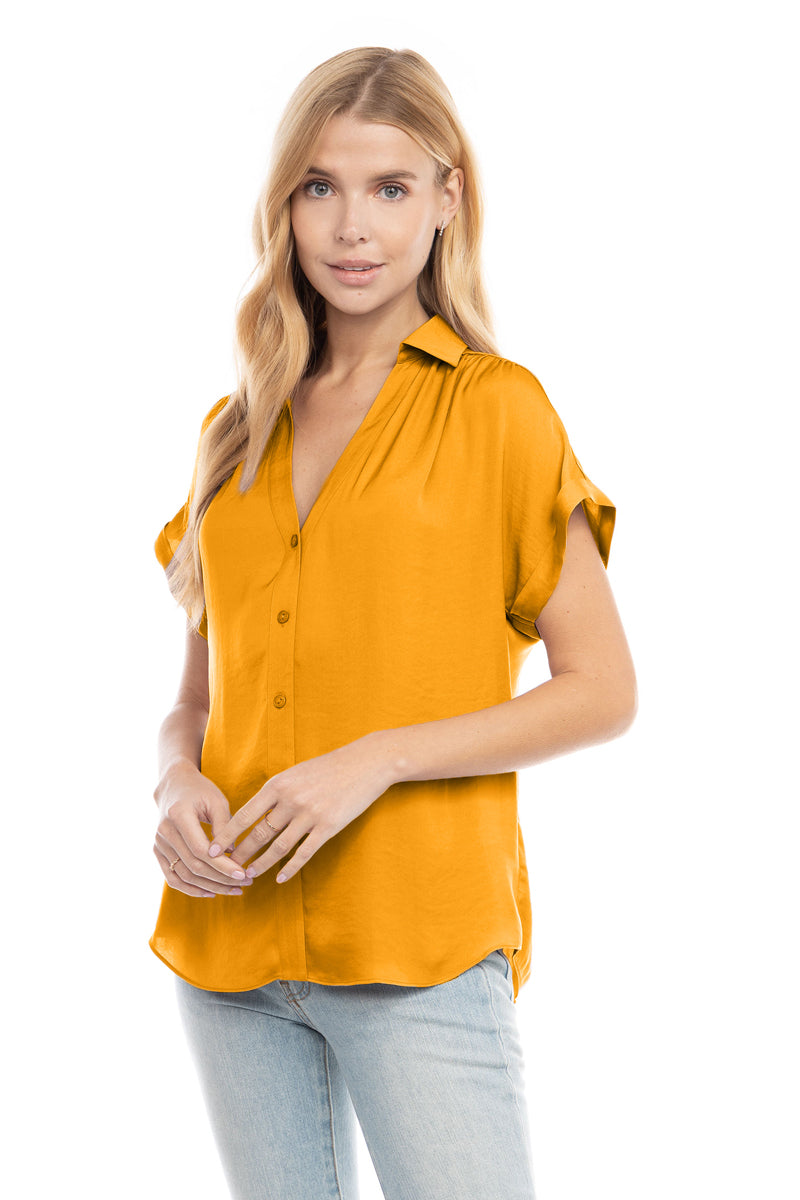 Discover sophistication in our Short Sleeve Collared Blouse with Rolled Cuffs, a perfect blend of classic style and modern detail. The rolled cuffs add a touch of casual elegance, making it suitable for both work and leisure. Effortlessly chic, this blouse ensures you exude confidence and refined charm effortlessly.