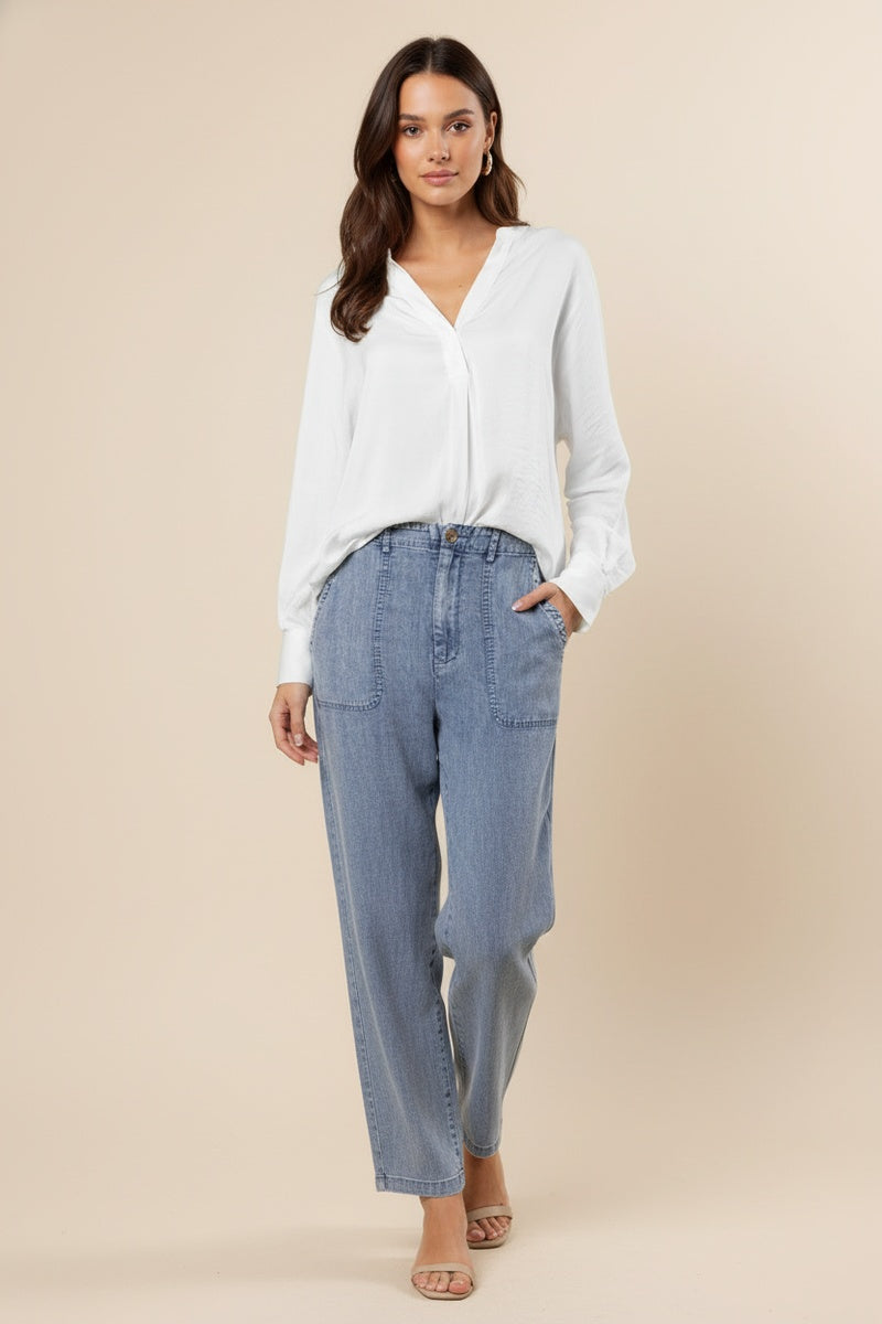 Silky Satin Popover Blouse
