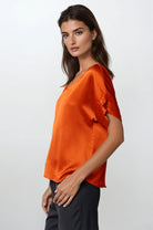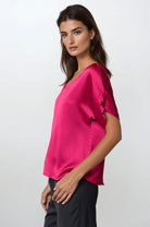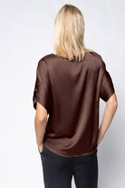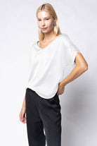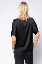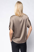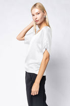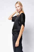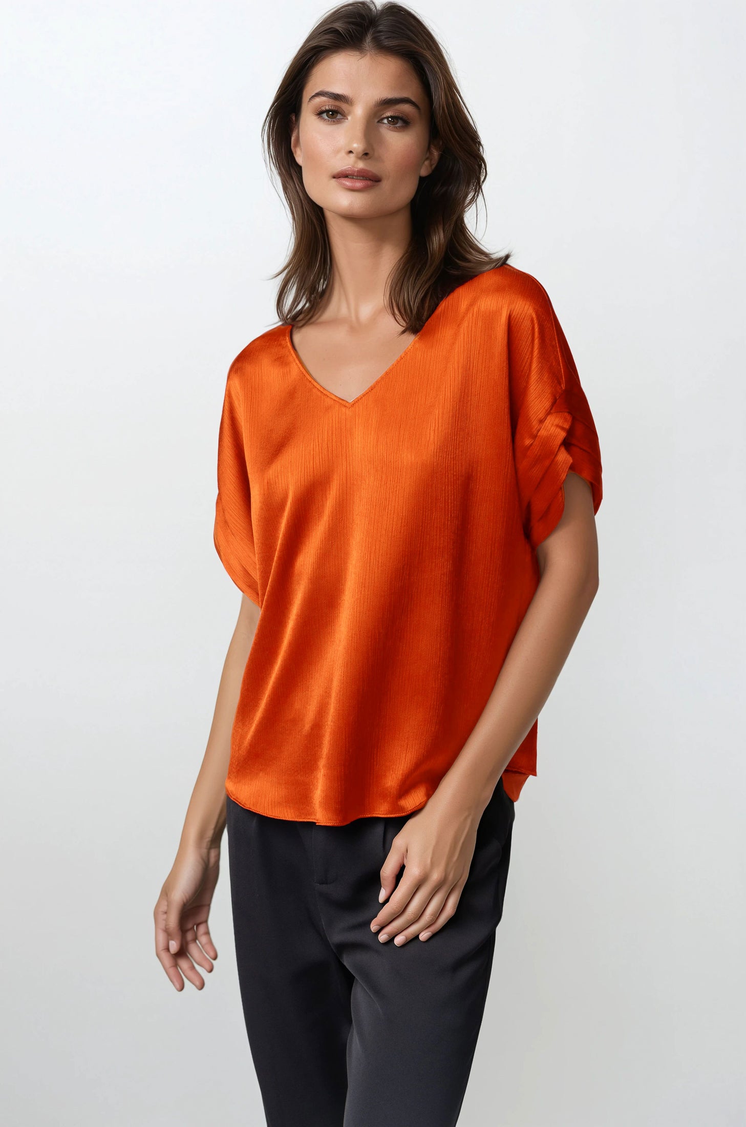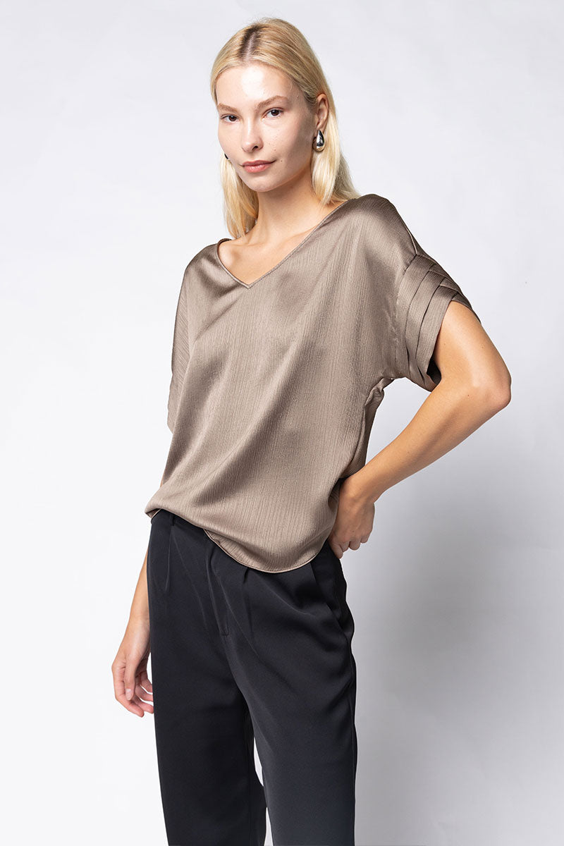V-Neck Blouse With Bands Sleeve in Crinkle Satin