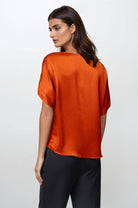 - Luxurious textured satin fabric with a flattering V-neckline.