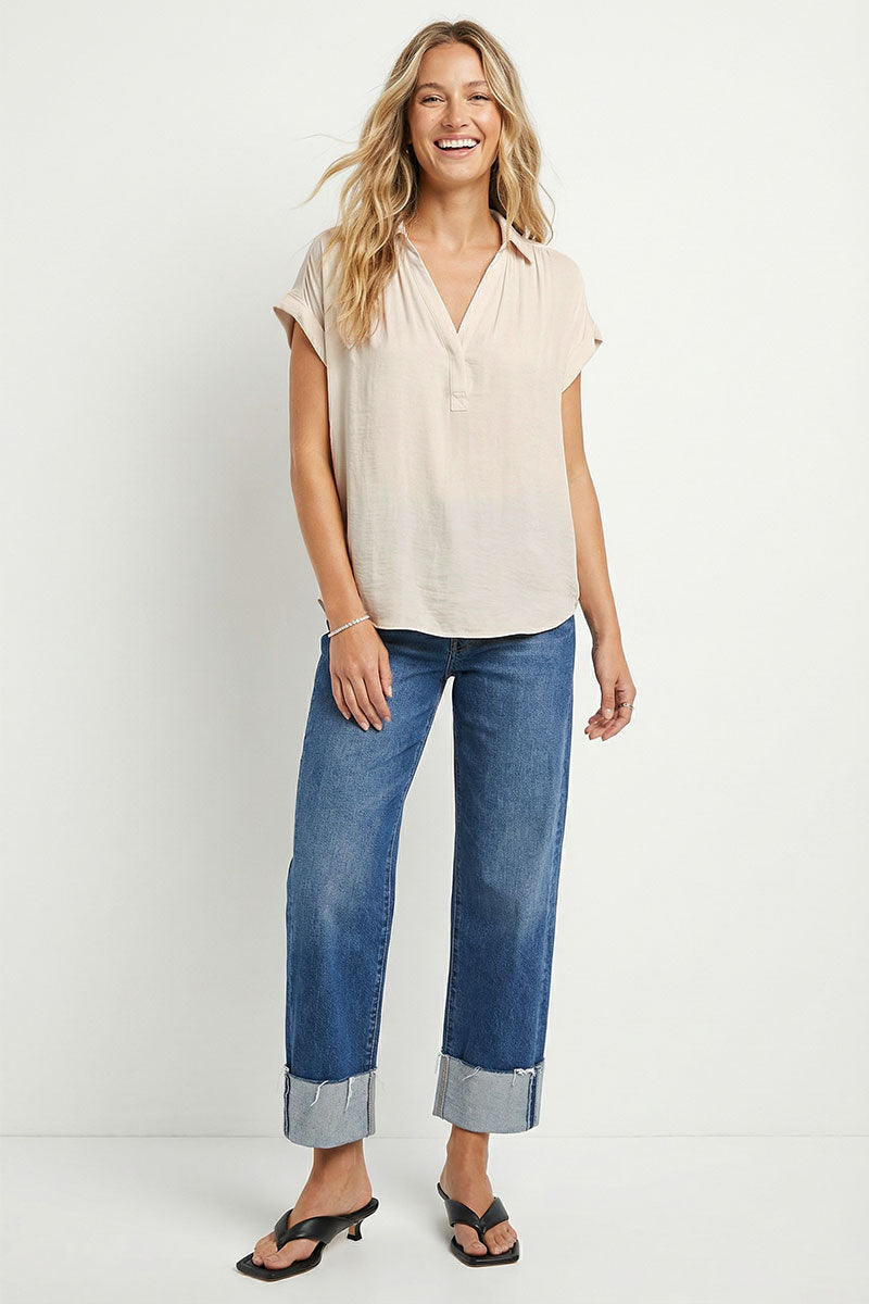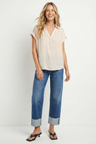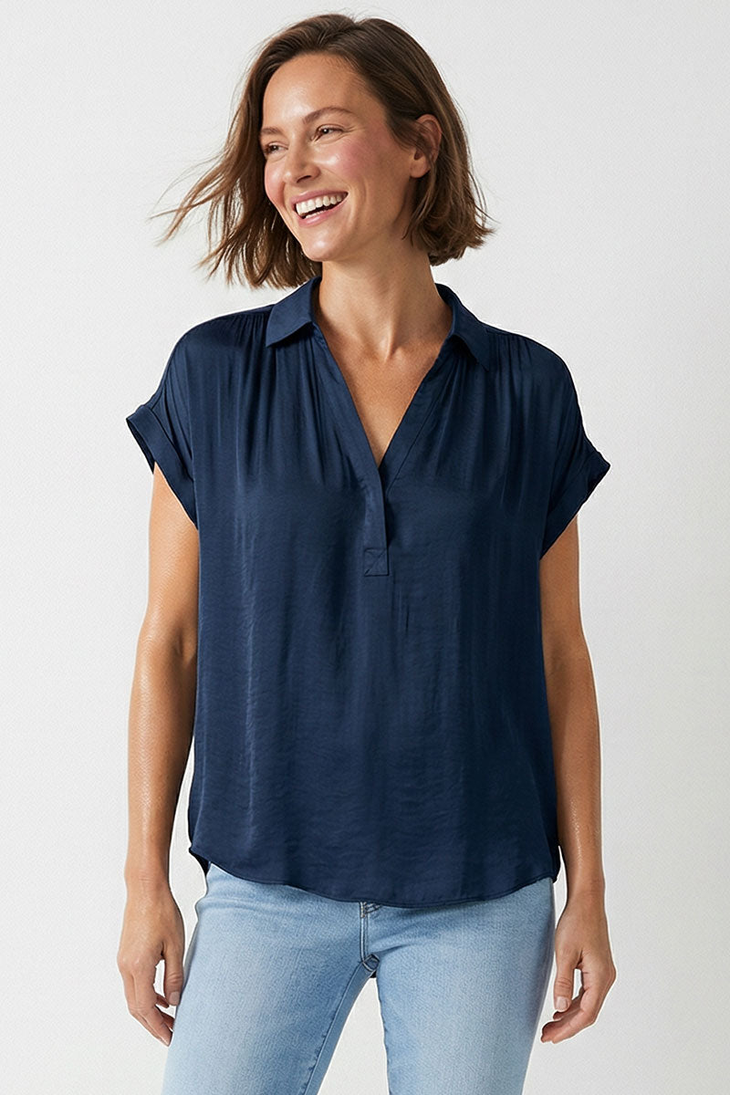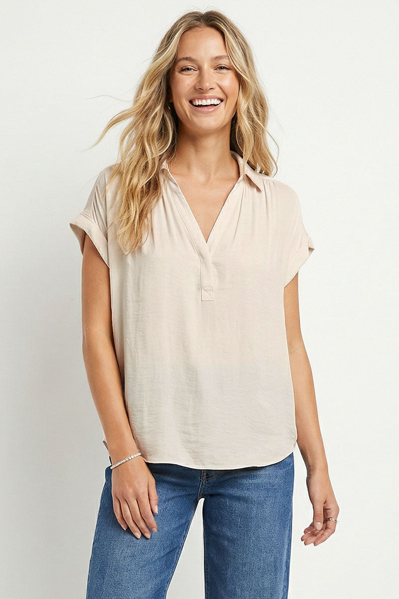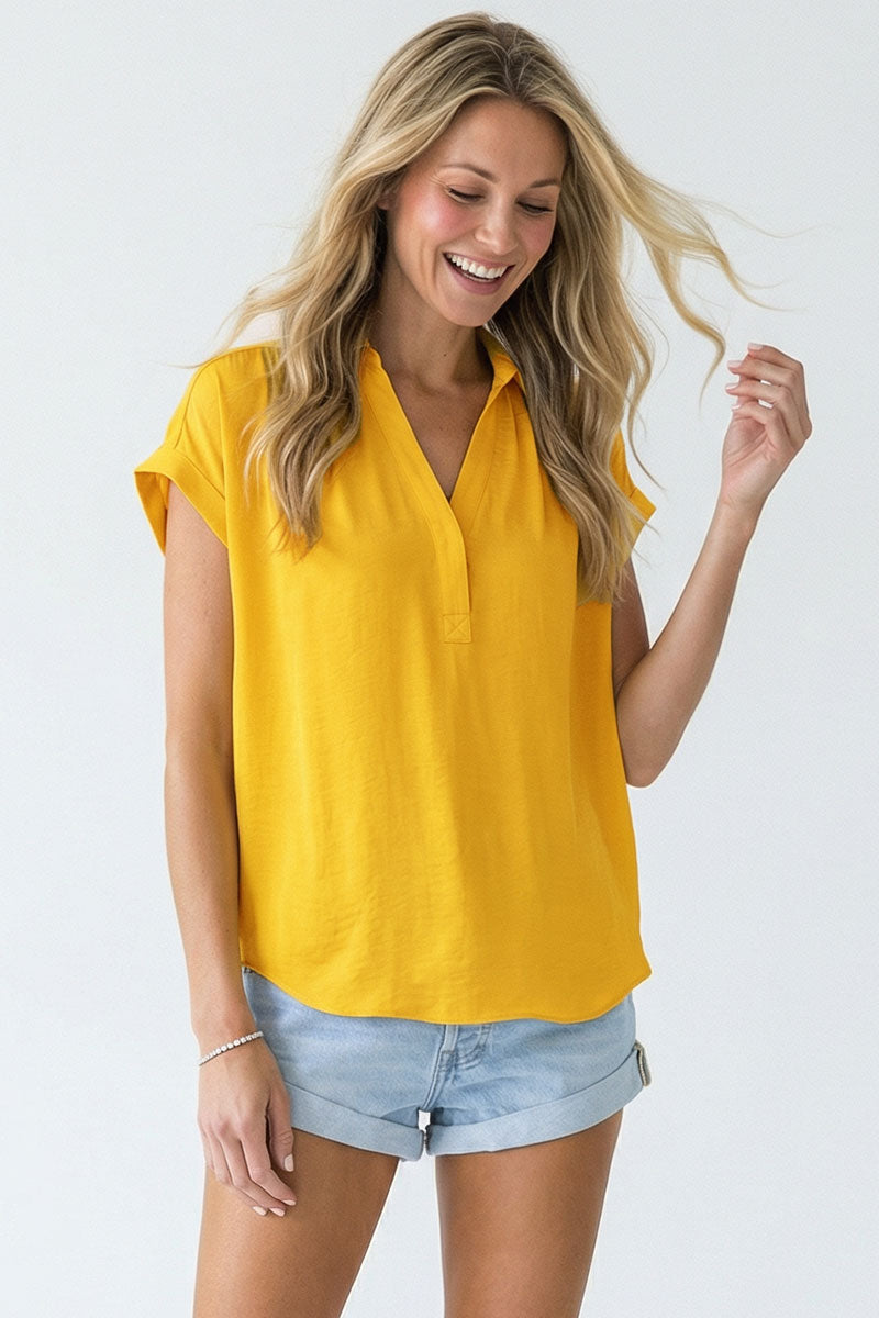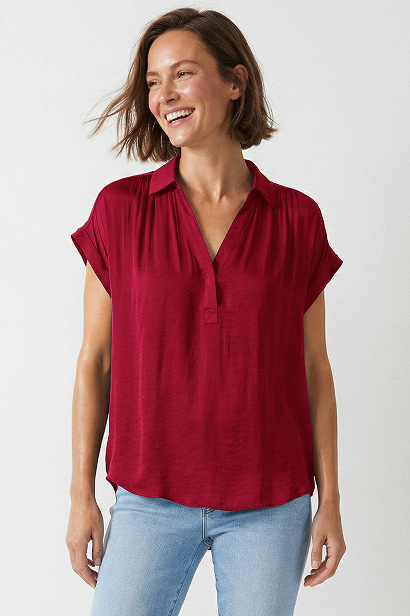 Enhance your everyday elegance with our best-selling Half Placket Short Sleeve Blouse, available in a variety of chic colors suitable for all seasons. This blouse combines a classic half-placket design with short sleeves, creating a versatile and timeless addition to your wardrobe, perfect for effortless style on any occasion.