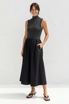 Sleeveless Mock Neck Maxi Dress